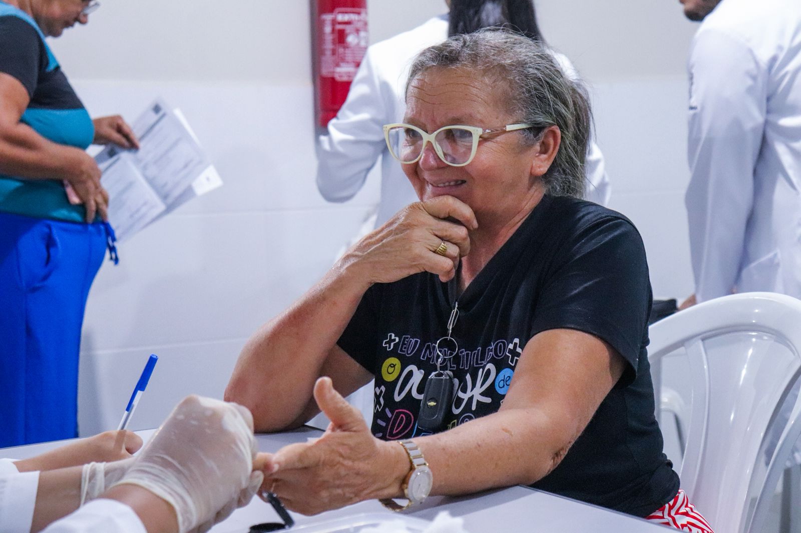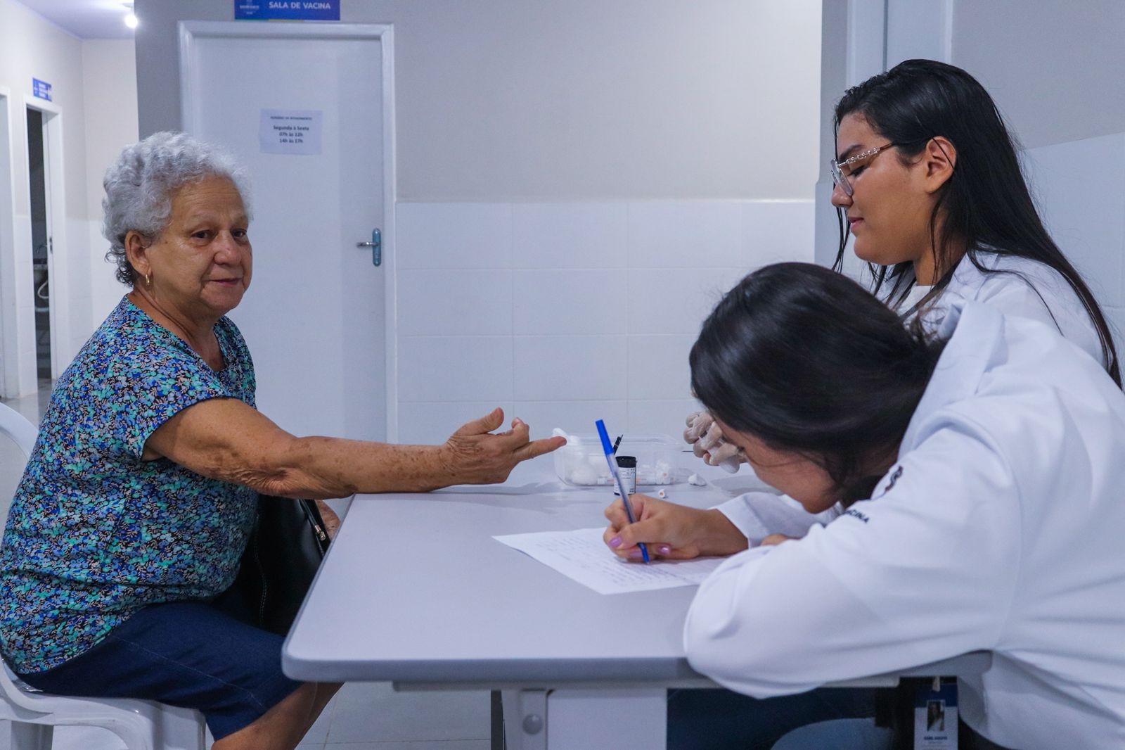 A ação contou com diversos serviços gratuitos à população, incluindo imunizações, aferição de pressão arterial, exames de glicemia e hemoglobina glicada. (Foto: Vitória Souza/Secom)
