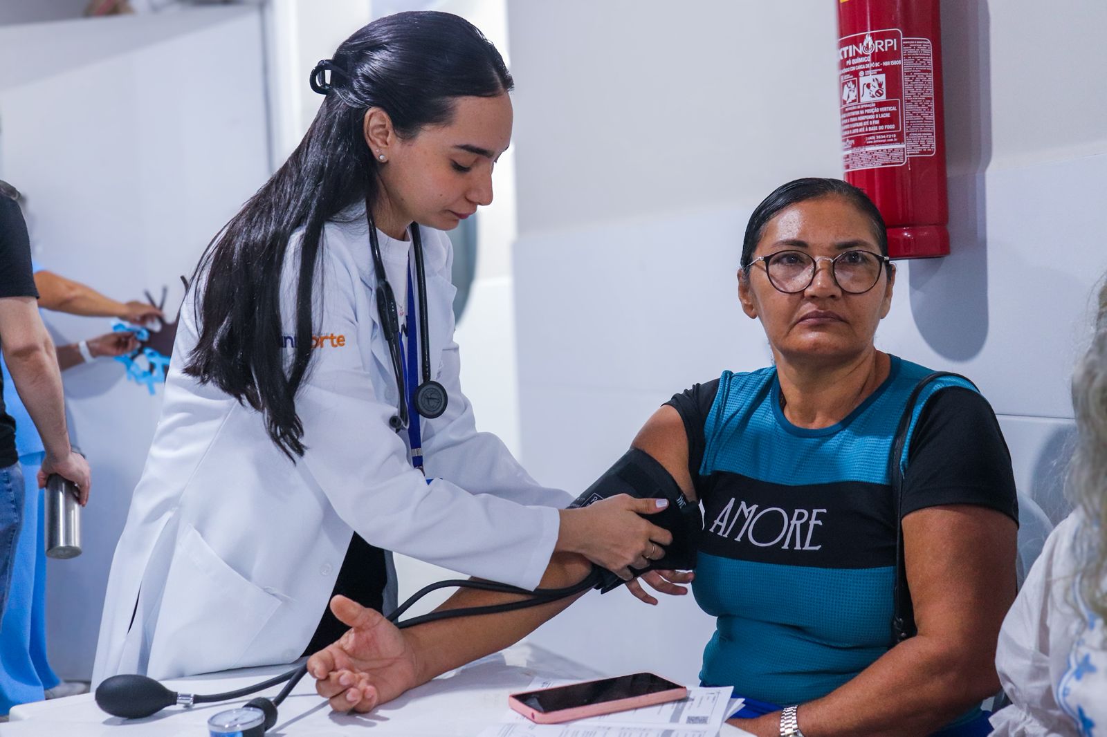 Amanda Zancheta destacou a relevância dos exames oferecidos no evento, como o eletrocardiograma e a avaliação da retina. (Foto: Vitória Souza/Secom)