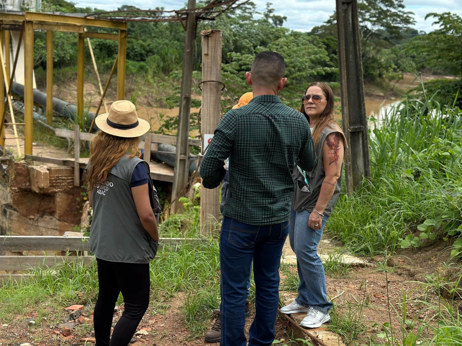 Durante a inspeção, os técnicos da Ageac percorreram as instalações da ETA-1 e a área de captação localizada às margens do Rio Acre, onde estão concentradas frentes de trabalho voltadas à modernização das linhas de recalque, à ampliação da base flutuante e à instalação de novas bombas. Essas estruturas são responsáveis por conduzir a água bruta do rio até as estações de tratamento e fazem parte do plano emergencial implementado para garantir a continuidade do fornecimento à população.