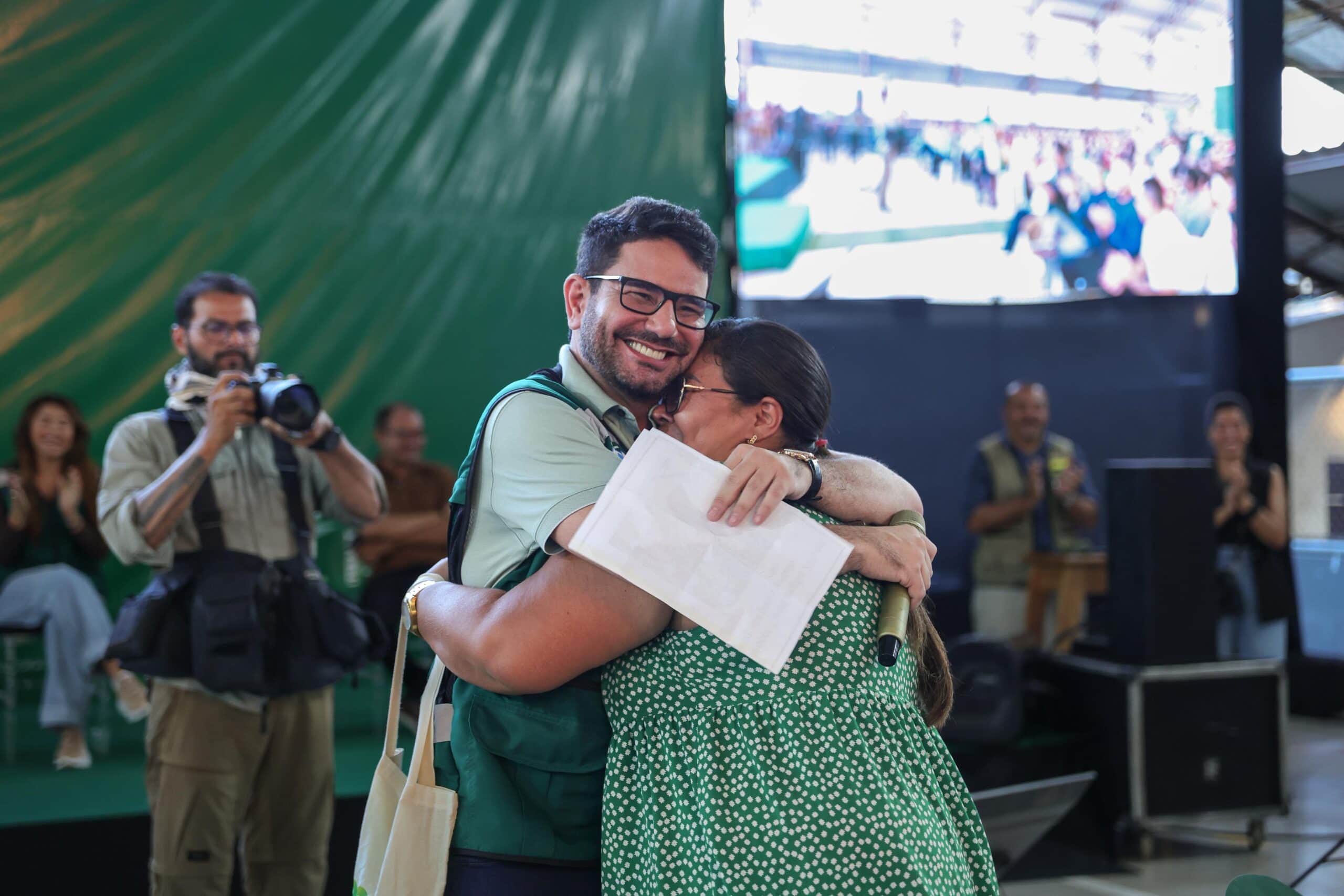 Em discurso emocionado, Gabriela relembrou os desafios enfrentados em 2023 para entregar os títulos definitivos aos moradores do bairro Laranjal e do polo Variante da Borracha, que aguardavam há mais de 30 anos pela documentação registrada em cartório.
