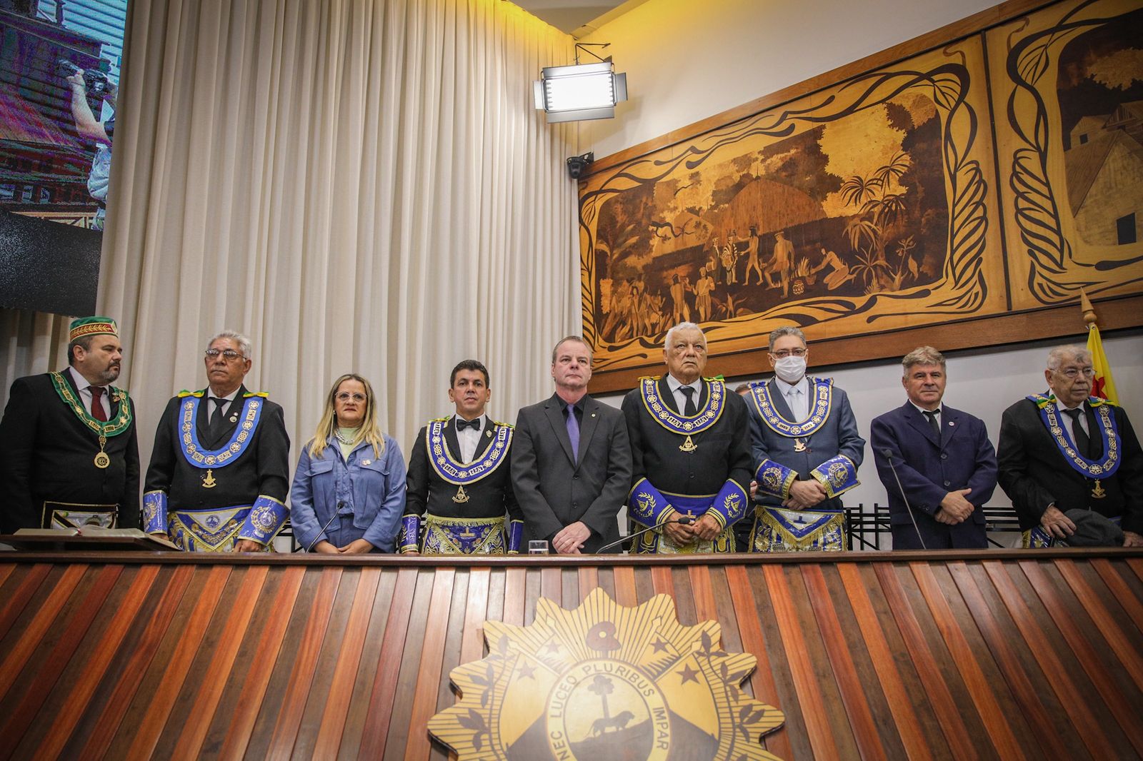 Na manhã desta quinta-feira (21), a Assembleia Legislativa do Estado do Acre (Aleac) realizou uma sessão solene em homenagem ao Dia do Maçom. A solenidade aconteceu no plenário do Parlamento acreano e reuniu autoridades, parlamentares, representantes da maçonaria e convidados.