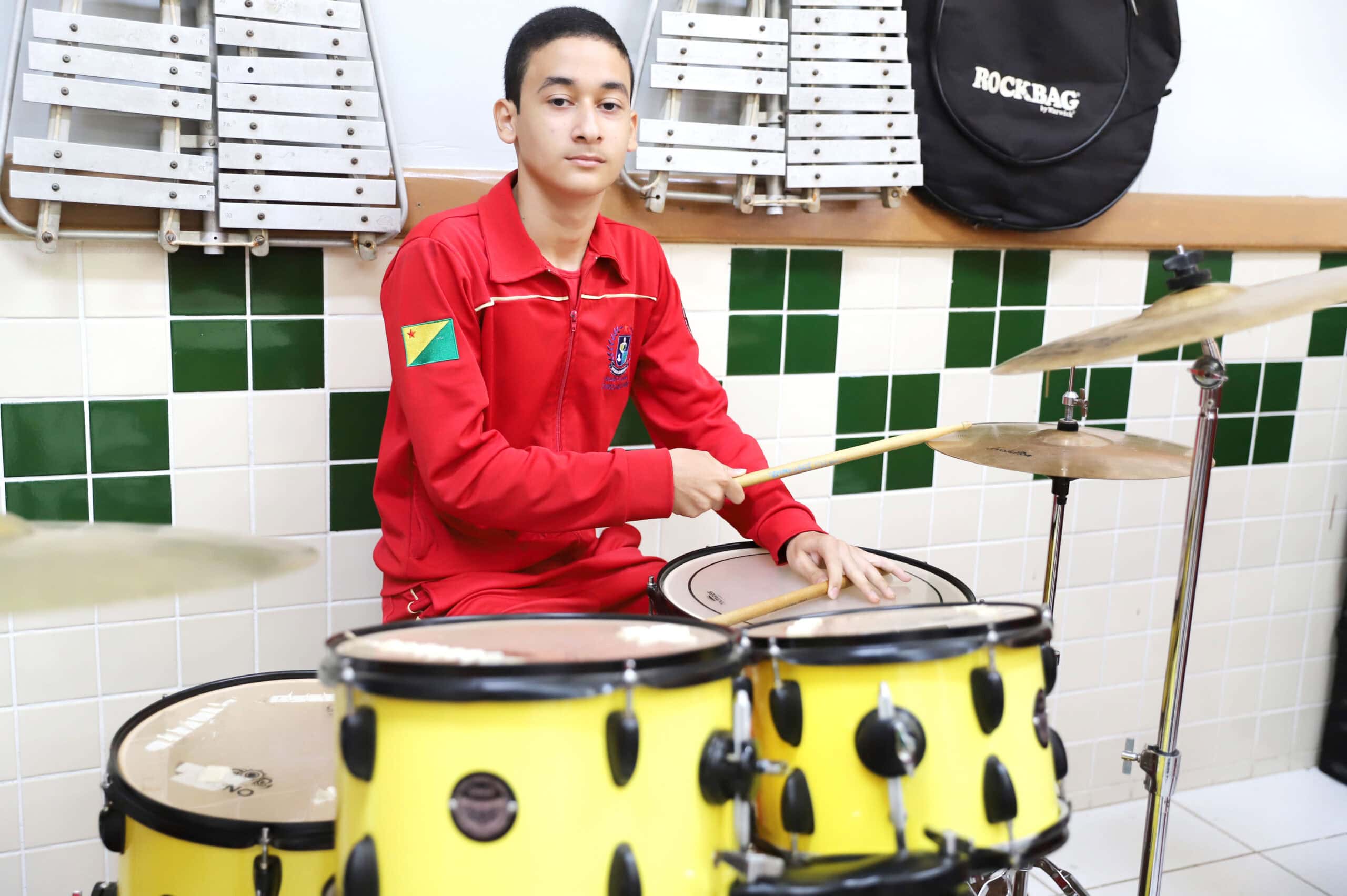 O estudante, diagnosticado com transtorno do espectro autista (TEA), cursa a 1ª série do ensino médio na Escola Lourival Pinho, em Rio Branco, mas ainda faz questão de permanecer na banda da Escola Cívico Militar Wilson Barbosa, na Cidade do Povo, onde estudou o fundamental. Para ele, a música virou uma forma de expressão e um caminho para se conectar com os outros.