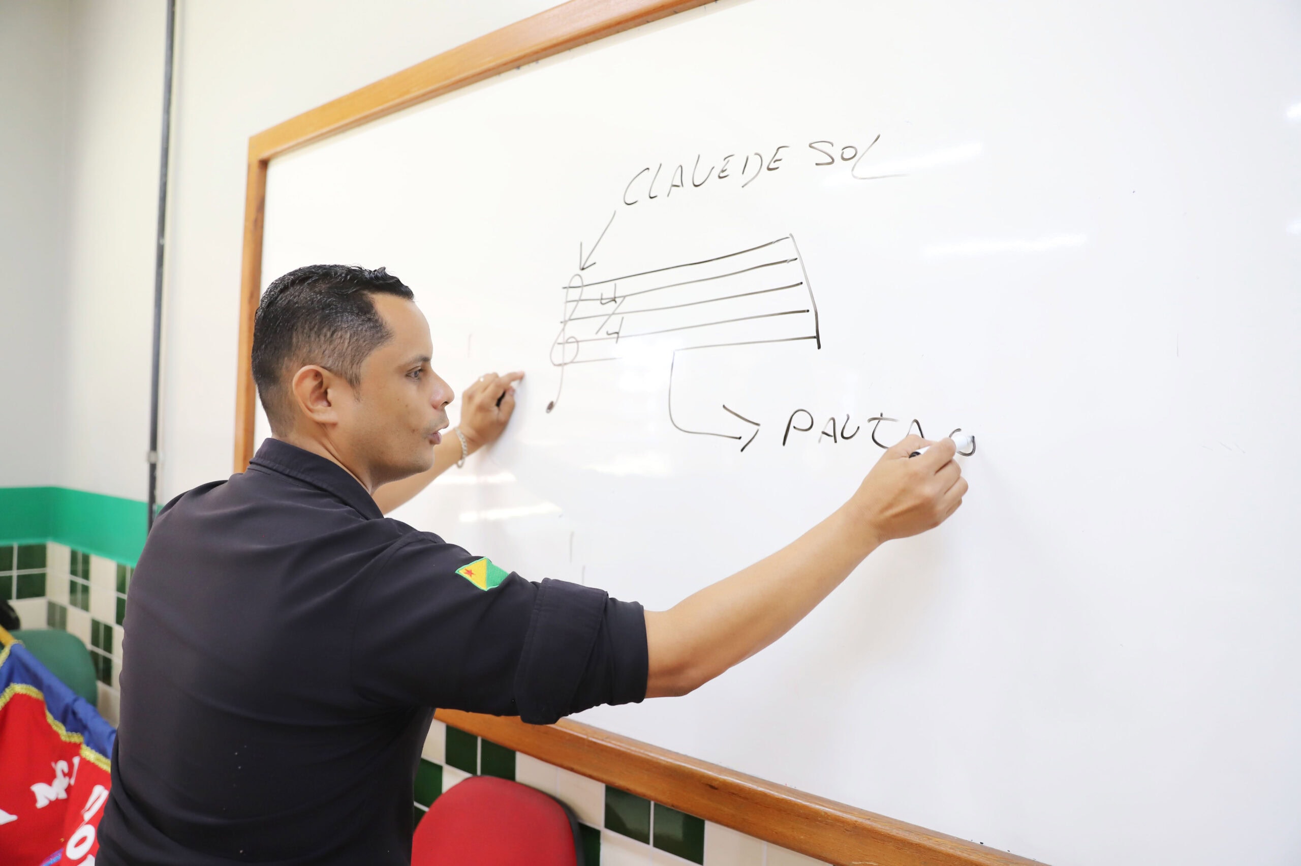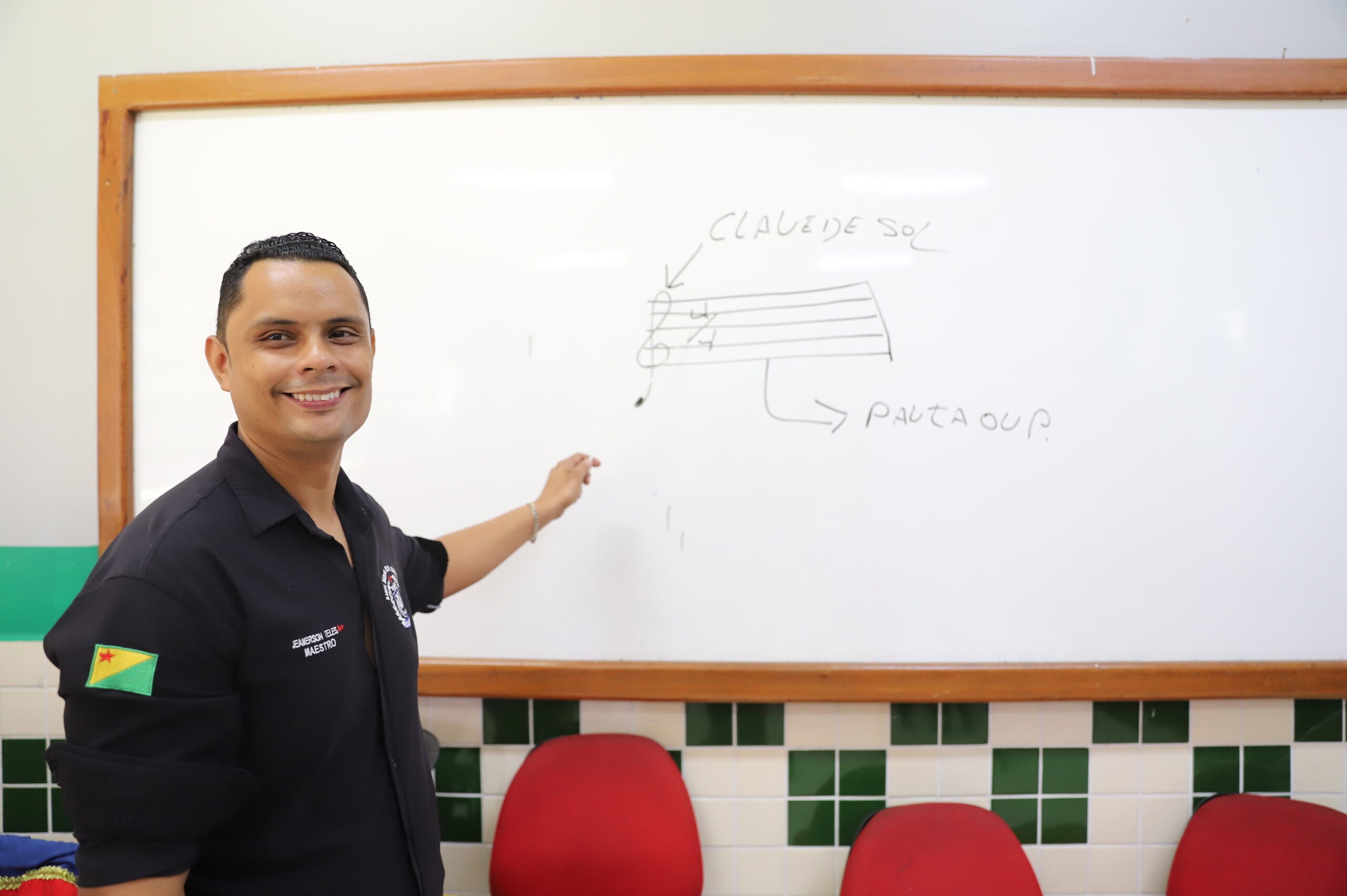 Jeamerson conta que o trabalho começa pela base teórica: pauta, pentagrama, escala. “Depois vem a prática no instrumento. No início pode ser difícil, mas de repente eles começam a tocar, a se desenvolver e a mudar. Não é só aprender música. Eles ganham autonomia, confiança, e isso se reflete também na sala de aula”, explica.
