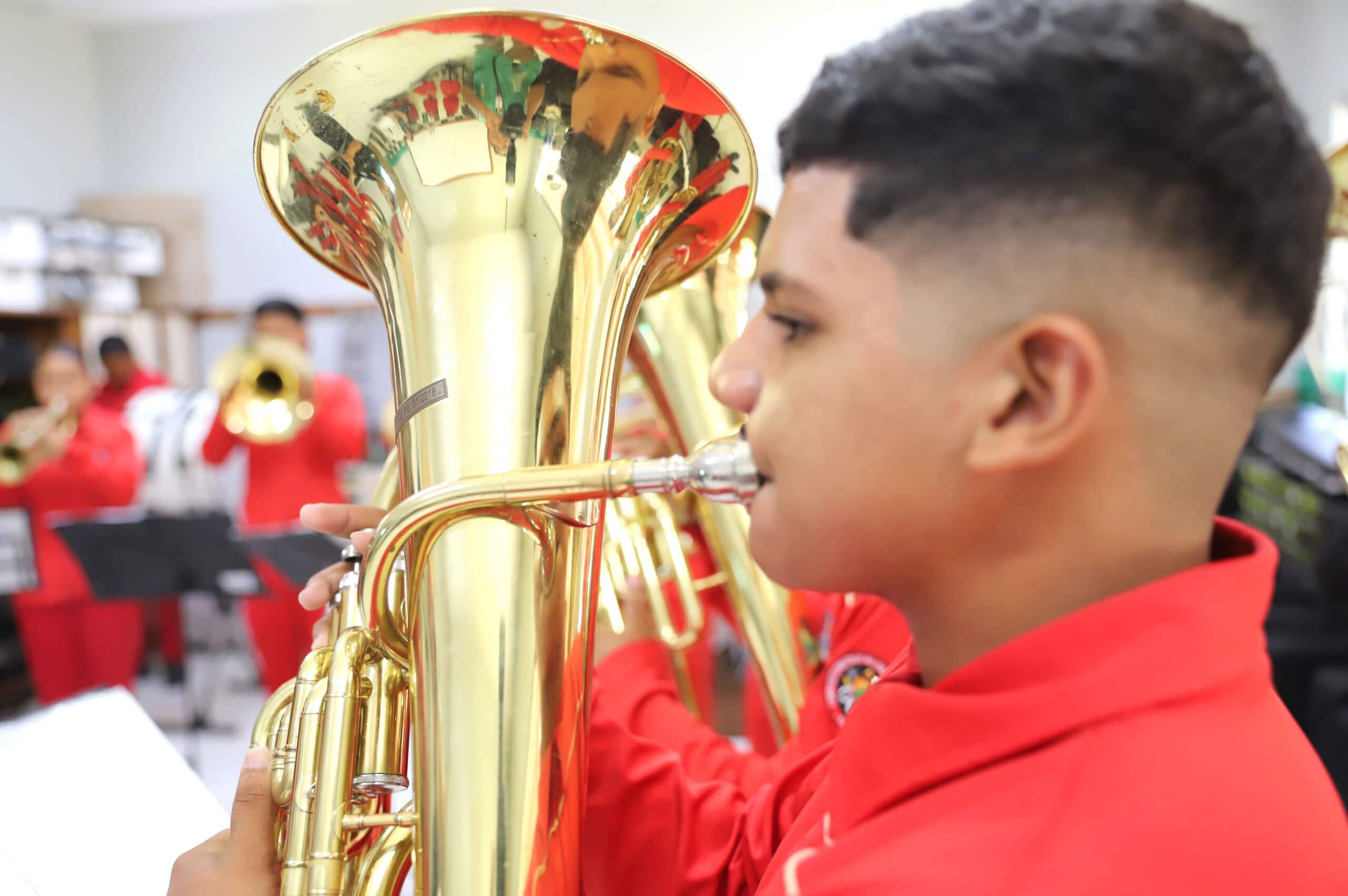 Já José Guilherme Veras, 17 anos, reforça o papel da banda no seu desempenho escolar: “A música me fez querer estudar mais, melhorar minhas notas para continuar na banda. Além disso, é uma calmaria, um porto seguro. Quando toco, esqueço os problemas”.