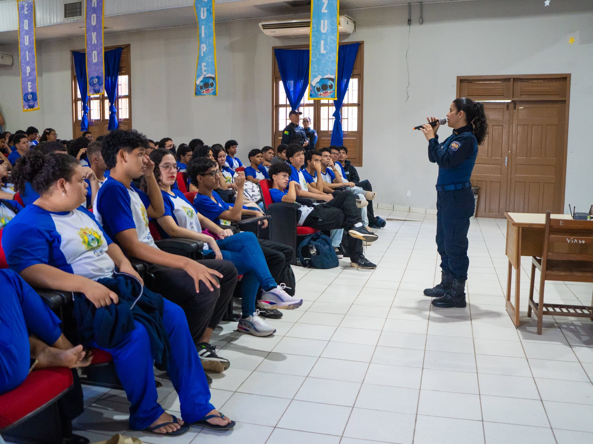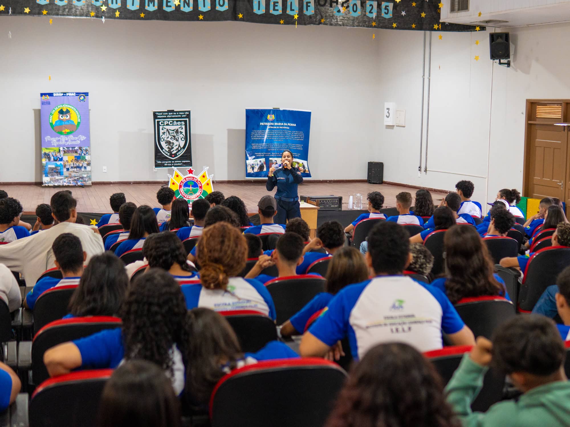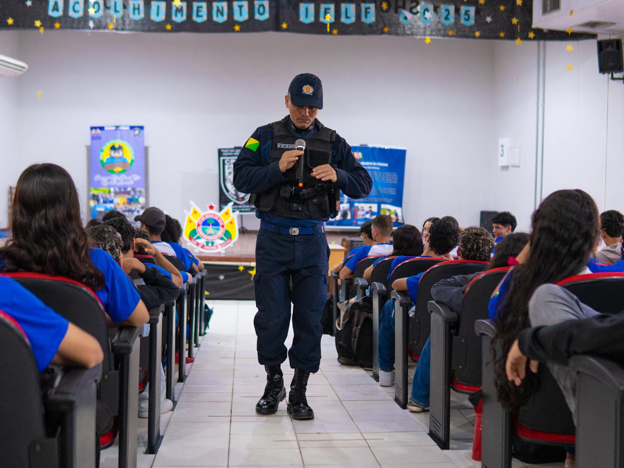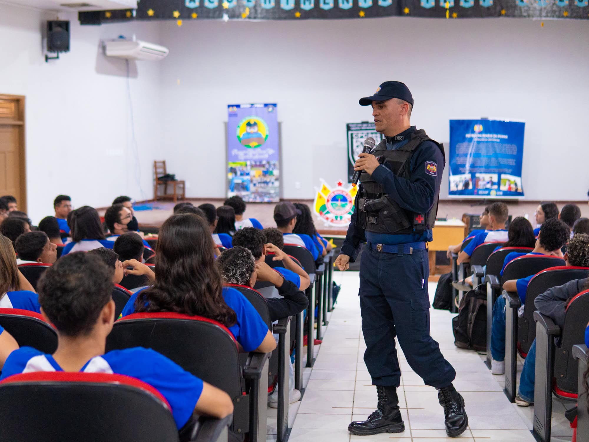 “Está sendo muito incrível, porque tem muitas coisas que eu não tinha conhecimento e poder ter essa conversa direto com os policiais, pessoas que trabalham lá dentro, também é incrível. Então, me ajuda a pensar um pouco sobre o que eu quero ser. Porque eu os vejo assim: eu quero ser igual a eles”, revelou com entusiasmo o estudante do 3º ano do ensino médio, Gabriel Marçal, sobre sua participação no programa da Coordenadoria de Polícia Comunitária e Direitos Humanos da Polícia Militar (PMAC): “Cia de policiamento escolar” que durante essa semana irá realizar uma programação direcionada aos estudantes do ensino médio da escola Lourenço Filho, em Rio Branco.