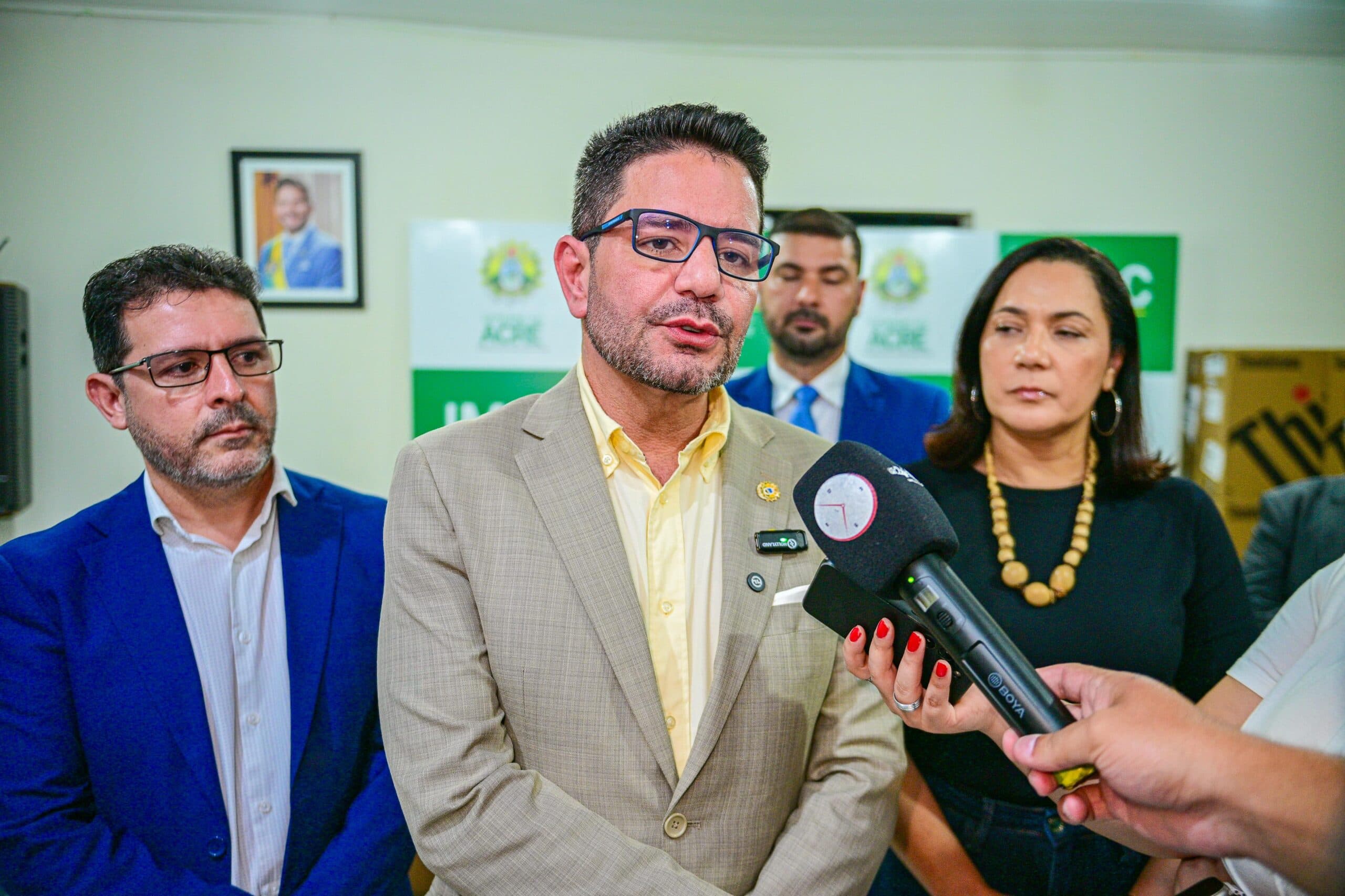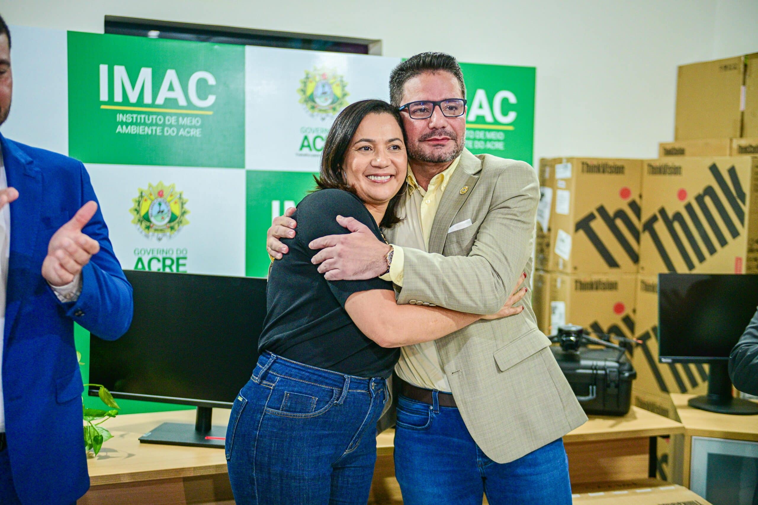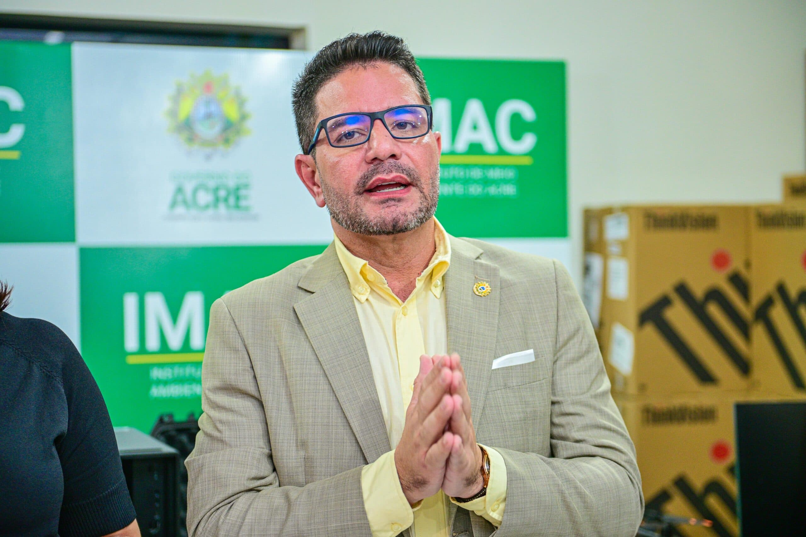 O governador do Acre, Gladson Camelí, esteve na sede do Instituto de Meio Ambiente do Acre (Imac) nesta terça-feira, 15, para efetivar a entrega de equipamentos para a modernização e fortalecimento das atividades do instituto no estado. Somados, os investimentos totalizam R$ 1.254.700, proveniente de recursos próprios do Imac, Fundo da Amazônia e Fundo Especial do Meio Ambiente (Fecca).