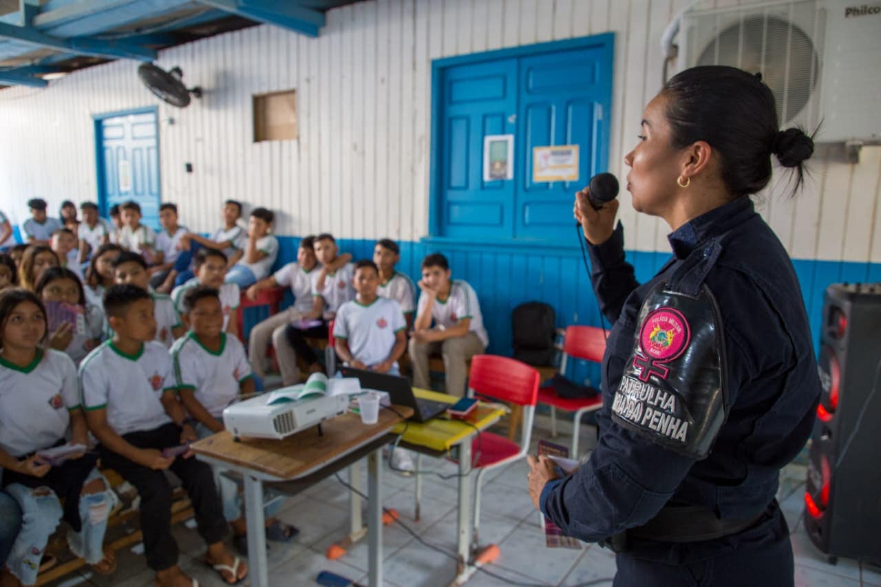 Neste mês de aniversário a Secretaria de Estado de Justiça e Segurança Pública (Sejusp) levou a Patrulha Maria da Penha ao município de Santa Rosa do Purus, em uma ação integrada com o Grupo Especial de Operações em Fronteiras (Gefron), da Diretoria de Políticas Públicas de Segurança, Justiça e Integração Social e a estratégia Acre Pela Vida, onde foram feitas palestras em escolas e comunidades indígenas.