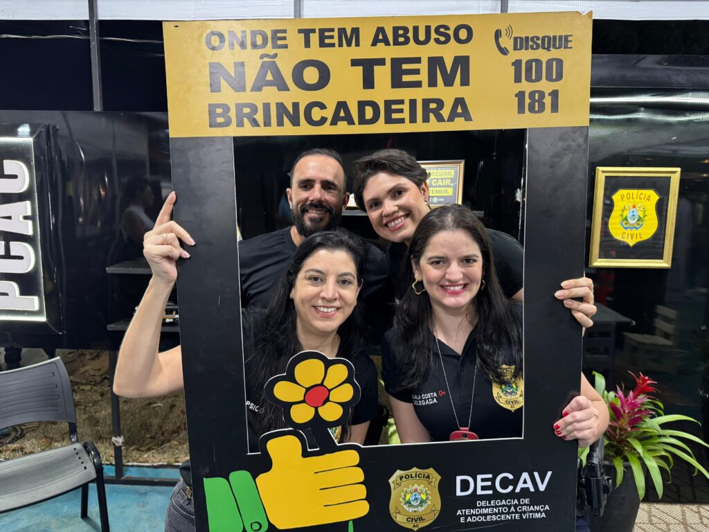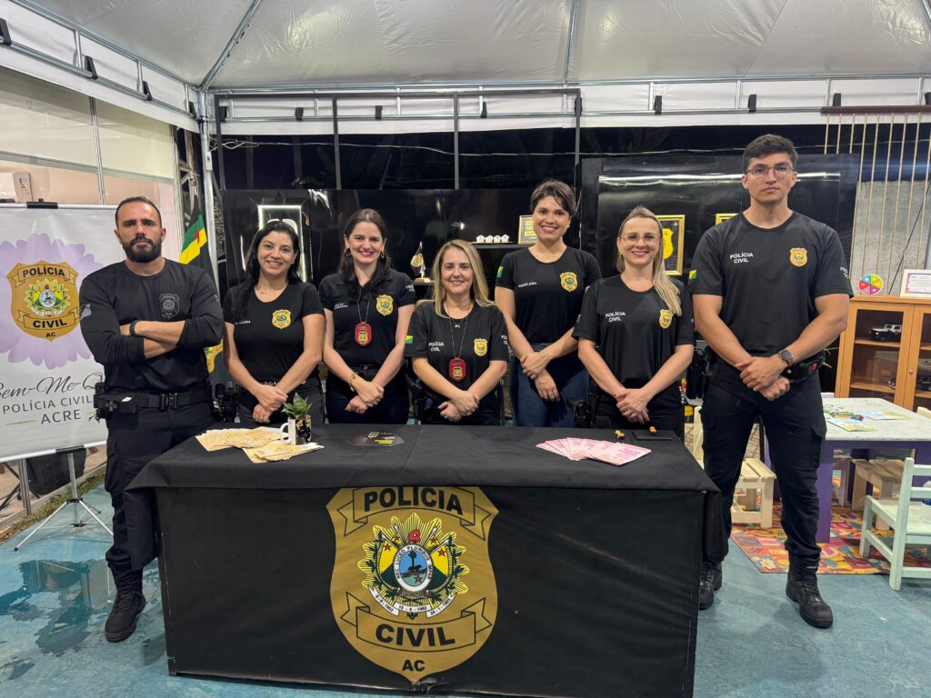 Na noite da última quinta-feira, 31, equipes da Delegacia Especializada de Atendimento à Mulher (DEAM) e da Delegacia de Proteção à Criança e ao Adolescente Vítima (DECAV) marcaram presença no stand da Polícia Civil do Acre (PCAC), durante o sexto dia da Expoacre 50 Anos.