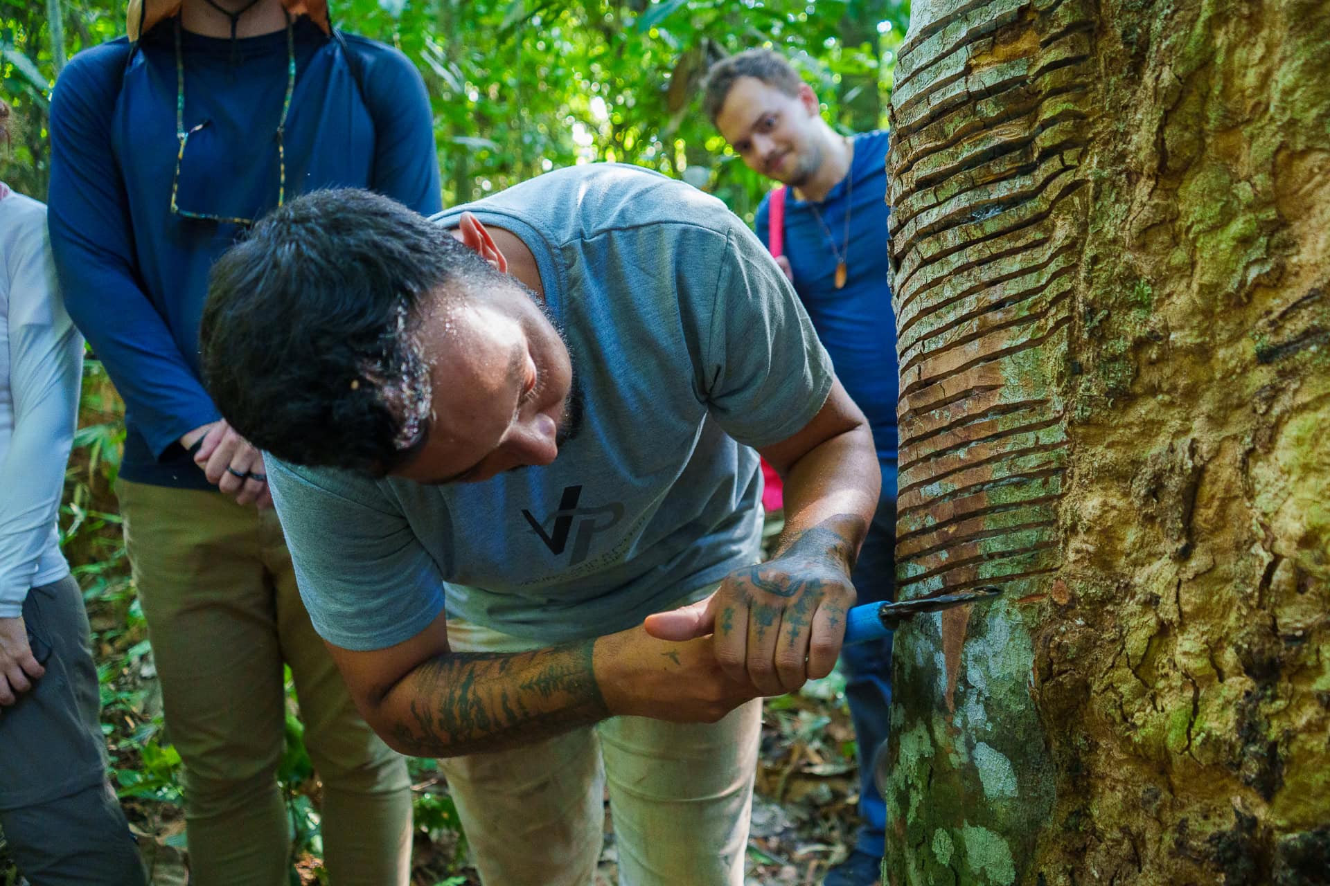 A equipe foi recepcionada pelo seringueiro Raimundo Mendes, primo do ativista ambiental Chico Mendes, e percorreu uma trilha de extração da borracha, também conhecendo o trabalho desenvolvido pelas mulheres do Ateliê da Floresta, onde são produzidos artesanatos de madeira de forma sustentável.