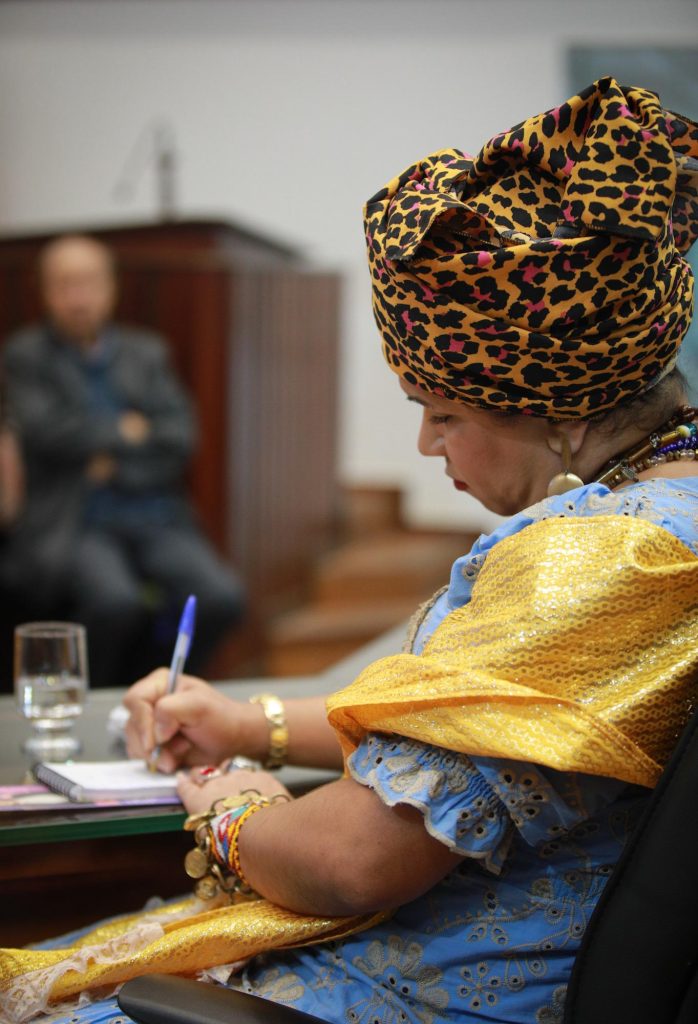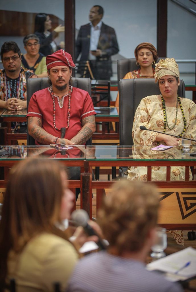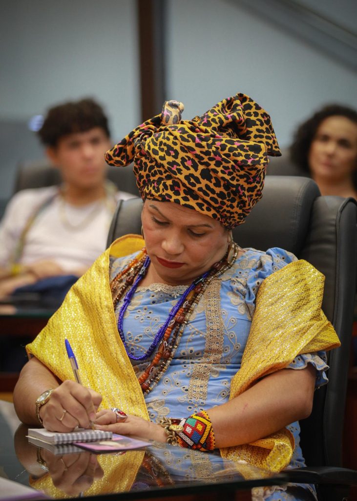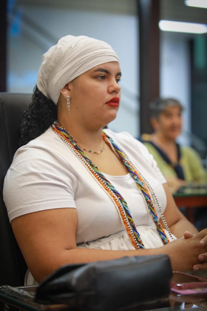 A conselheira Flávia Machado, representante do Centro Espírita Príncipe Espadarte e da Cadeira de Culturas Afro-Brasileiras do Conselho Estadual de Cultura, também participou da audiência pública e destacou a pluralidade das tradições religiosas presentes no Acre. “Estou aqui representando o Centro Espírita Príncipe Espadarte, que é uma vertente religiosa ligada às culturas ayahuasqueiras, mas também recebi o mesmo convite pela Cadeira de Culturas Afro-Brasileiras, que engloba as religiões de matriz africana, as religiões ayahuasqueiras e a capoeira”, explicou. Flávia agradeceu o convite feito pela deputada Michelle Melo e afirmou que participou da audiência com o objetivo de conhecer melhor o projeto e contribuir com o debate. “Estamos tomando contato com esse projeto hoje. Estou aqui para conhecer e contribuir naquilo que me couber. Obrigada a todos”, finalizou.