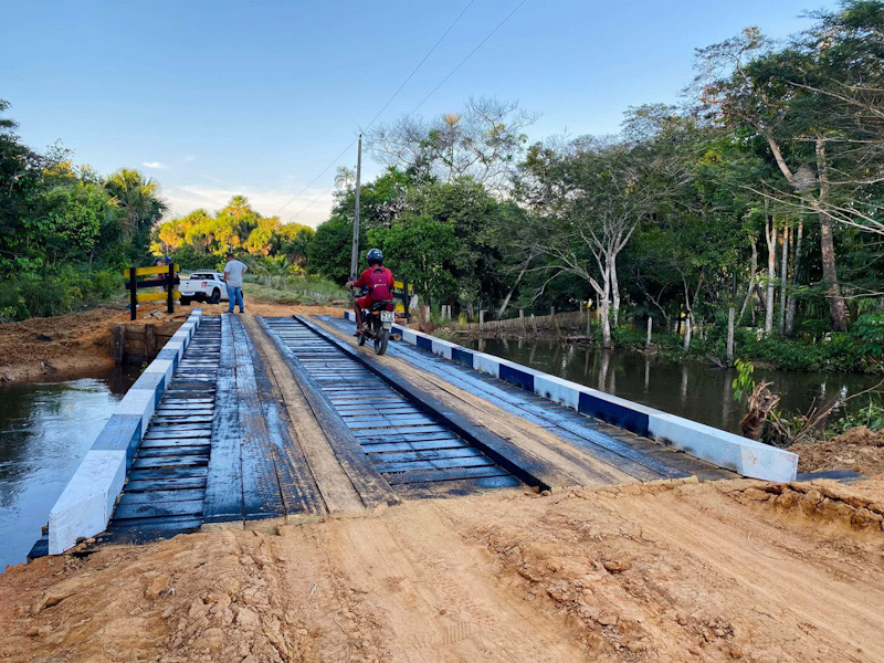 Além disso, já foram construídas 12 pontes em madeira, com outras quatro em execução, garantindo o acesso seguro em regiões isoladas durante o verão amazônico.
