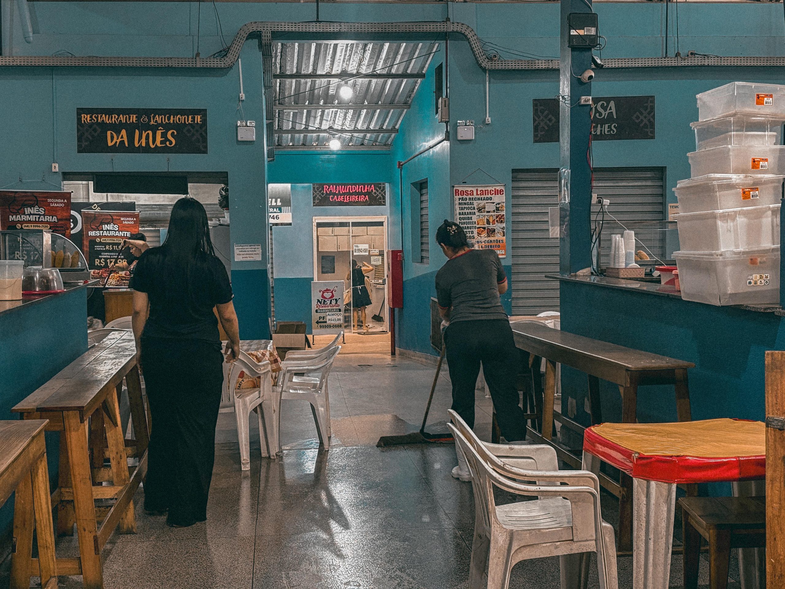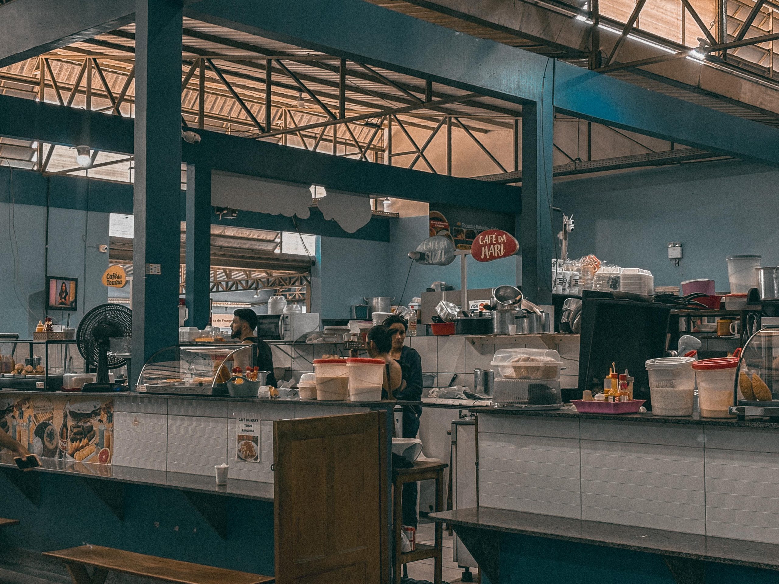 Atualmente, o Mercado do Bosque vai além da comida. Além das bancas e restaurantes, abriga lojas de assistência técnica, espaços de beleza, pequenos comércios e serviços variados. (Foto: Vitória Souza/Secom)