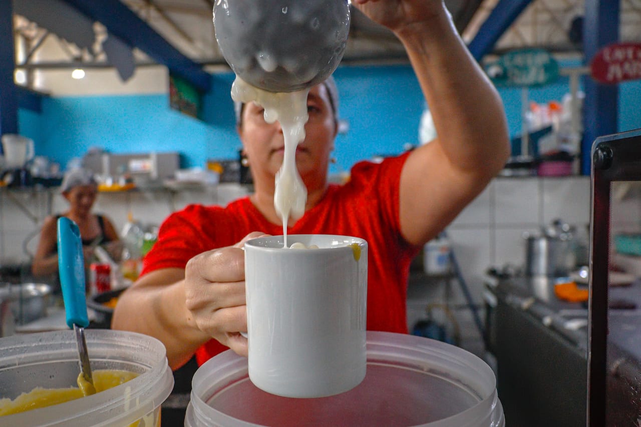 O ambiente é marcado pelo cheiro do café fresco, do mingau de banana tão apreciado e das comidas preparadas na hora. (Foto: Marcos Araújo/Secom)