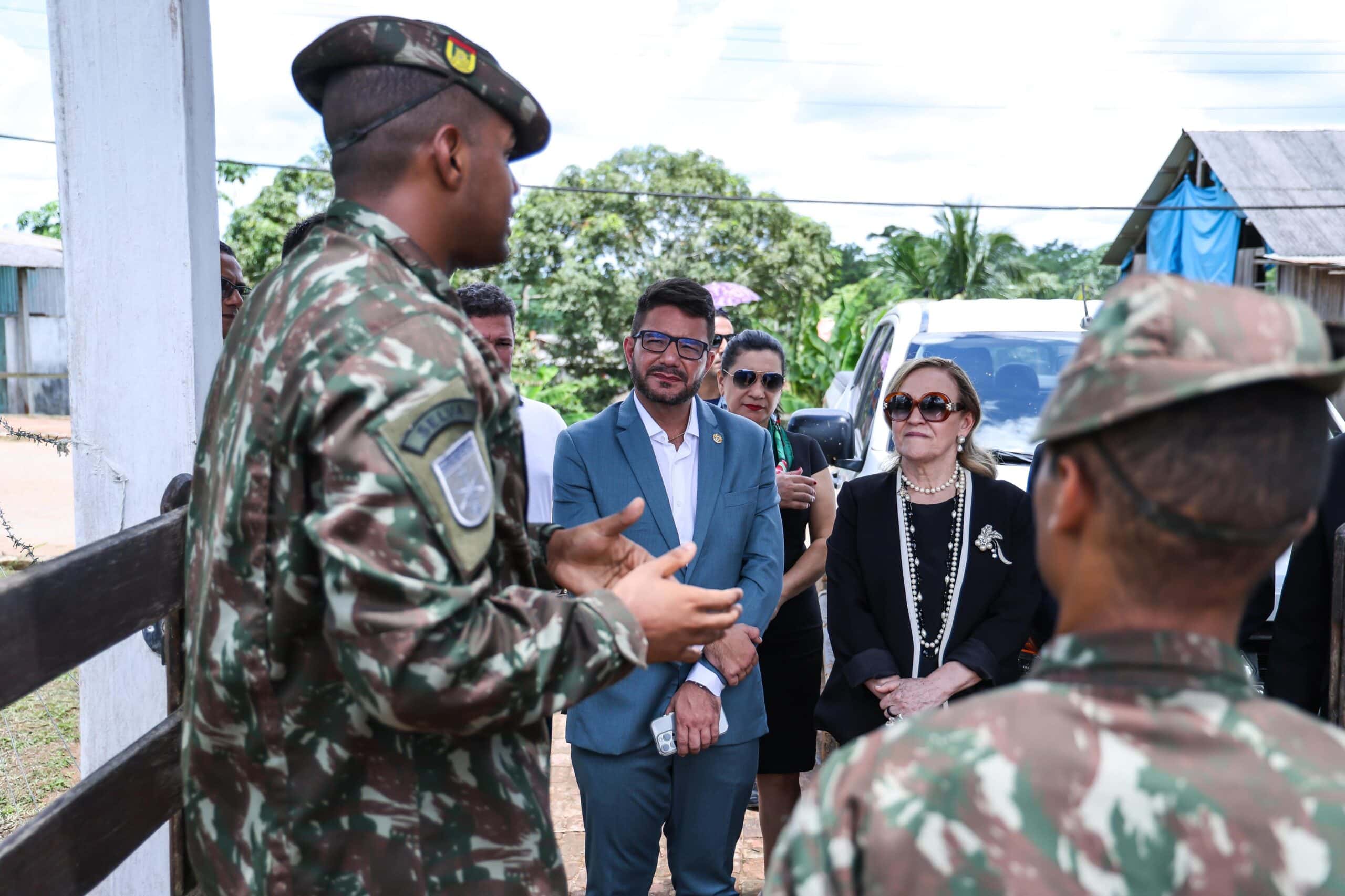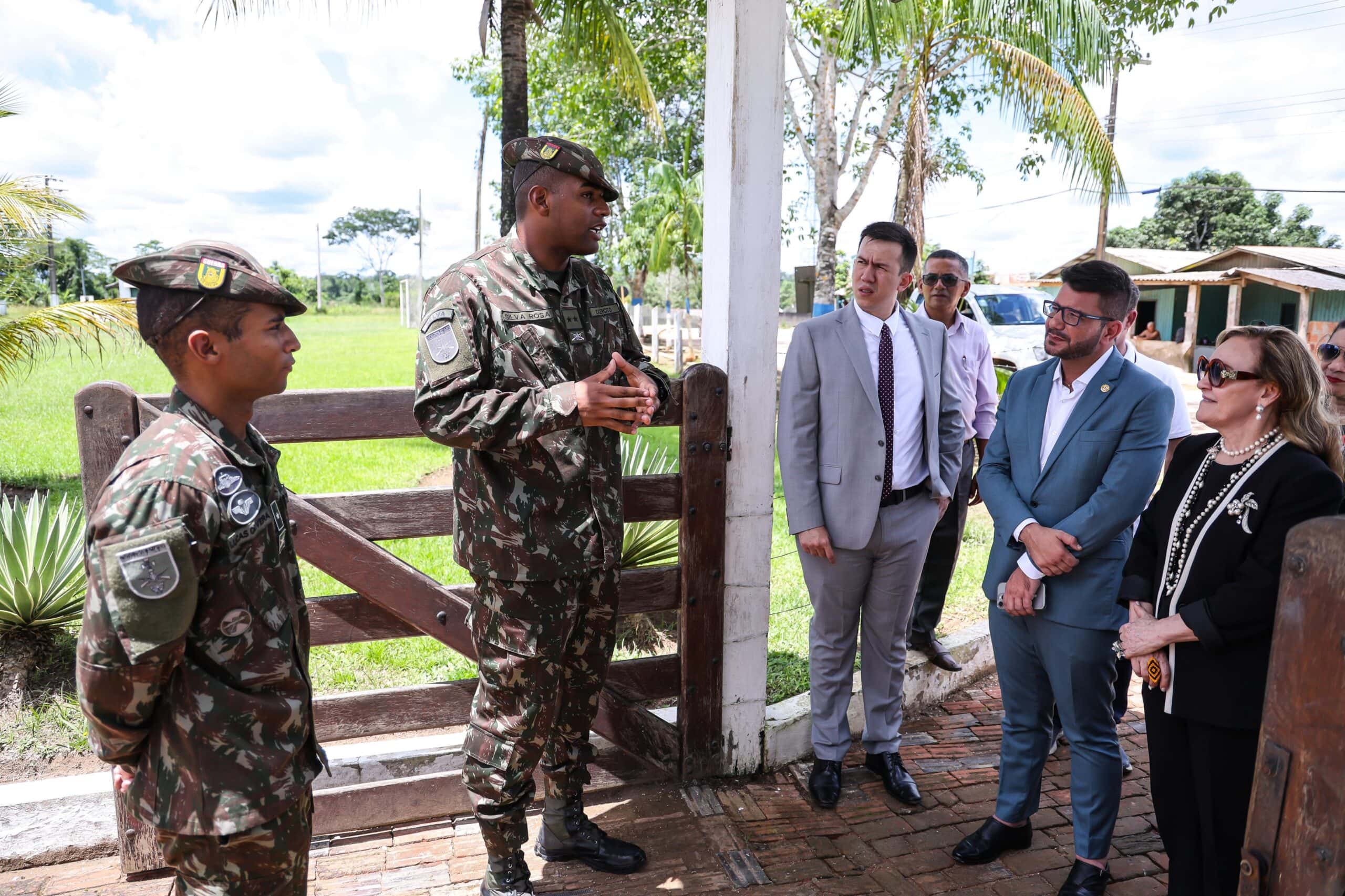 O governador também fez questão de ir até o 4° Pelotão Especial de Fronteira (PEF), onde foi recebido pelo tenente Silva Rosa. Na ocasião, ele agradeceu ao Exército pela parceria em ações emergenciais e de importante apoio para a população, como no caso de enchente ou secas, sendo imprescindíveis para a logística no abastecimento das cidades. “Vocês fazem parte da nossa história, e fiz questão de vir aqui hoje agradecer por toda a ajuda e reforçar que estamos à disposição”, concluiu.