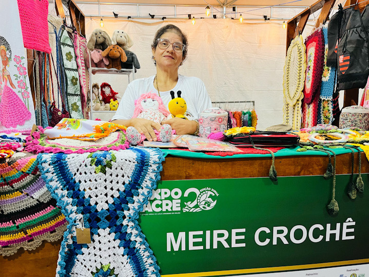 “Estamos no terceiro ano participando da Expoacre. É muito importante porque tô mostrando aqui pra população do Juruá o meu artesanato, o meu trabalho e fazendo grandes negócios”, conta com orgulho.