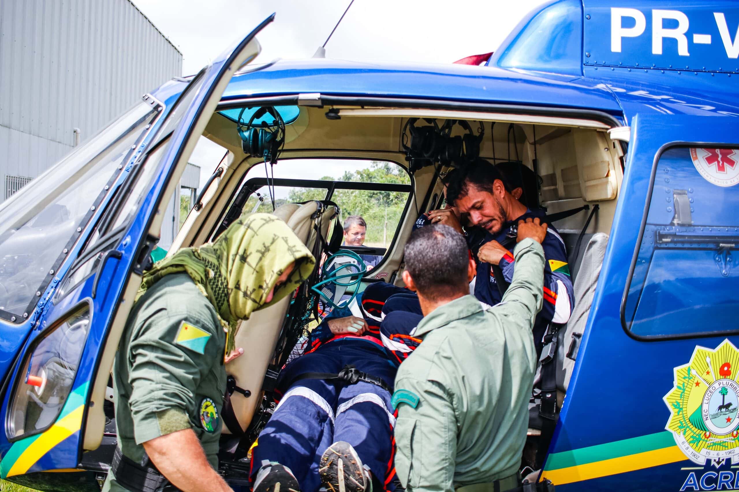 Operante na região desde 7 de abril, o helicóptero Hárpia 03 se tornou instrumento essencial no cumprimento da missão do governo acreano de salvar vidas, sobretudo as de acreanos que habitam em regiões de difícil acesso.
