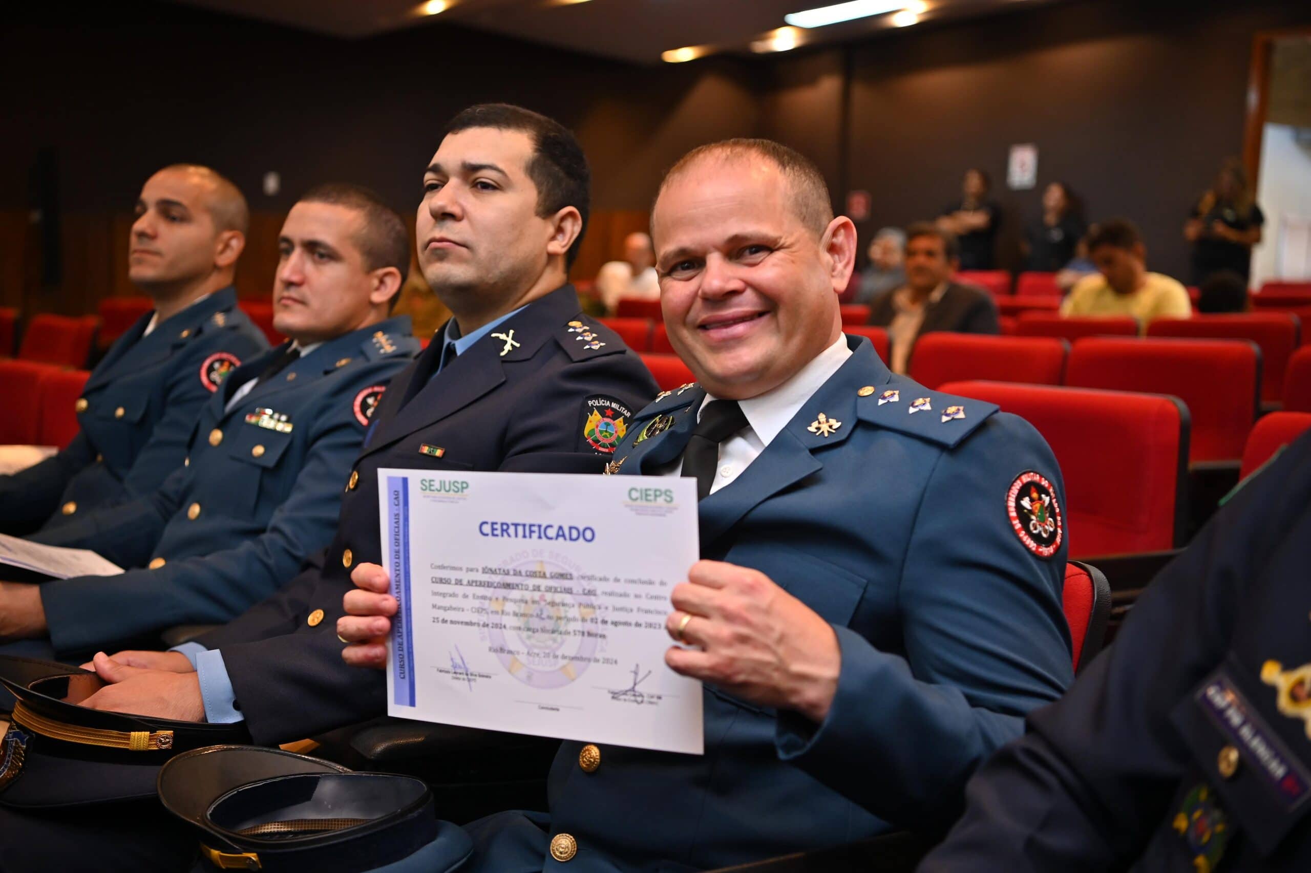 Coordenados pela Secretaria de Estado de Justiça e Segurança Pública (Sejusp), o curso teve a participação de 34 alunos, os quais cursaram 22 disciplinas ao longo de 600 horas, preparando o quadro de oficiais militares estaduais e de oficiais de administração de ambas corporações de segurança.