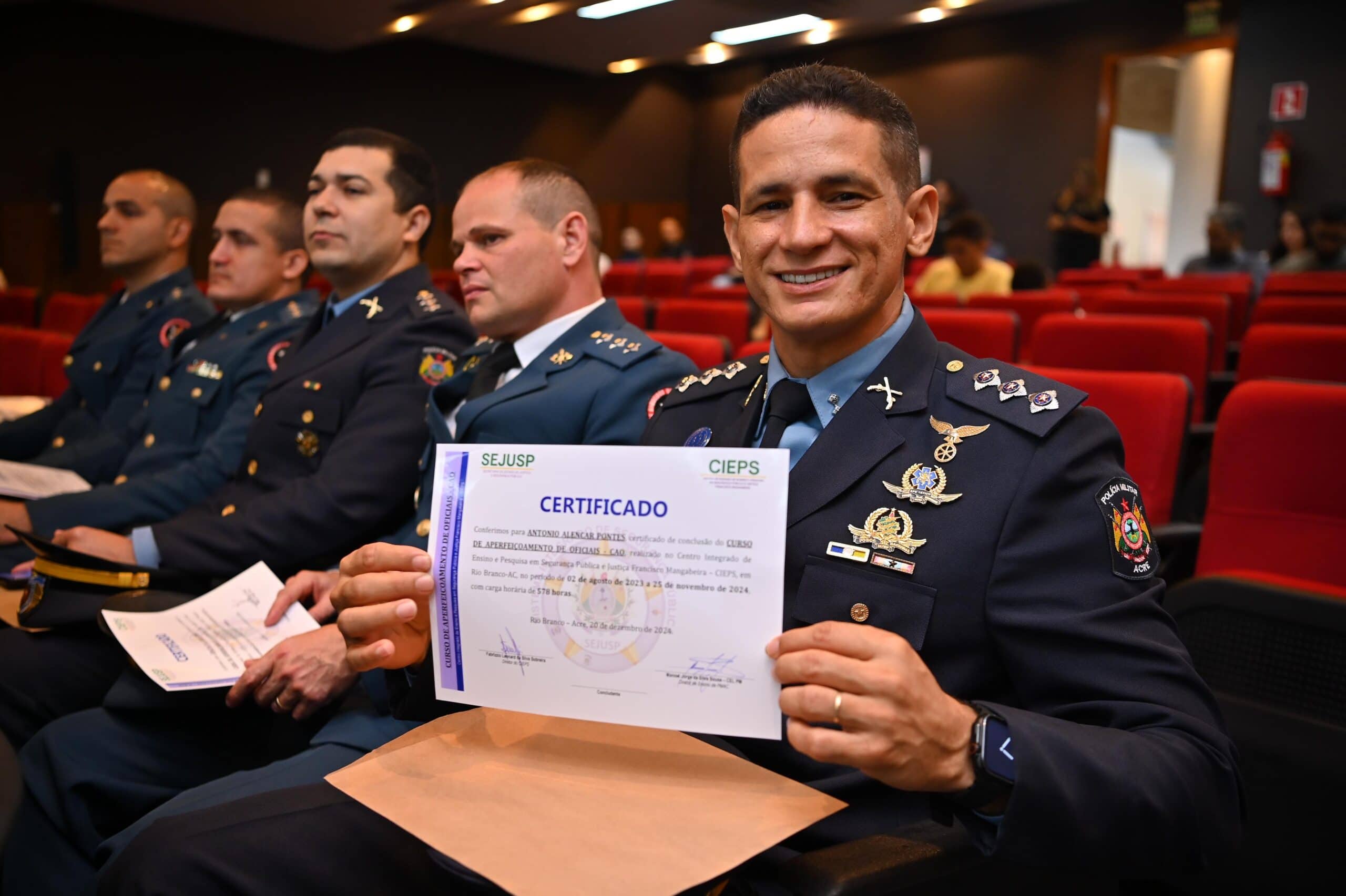 Aperfeiçoando a atuação de profissionais e garantindo segurança de qualidade, na manhã desta sexta-feira, 20, o governo do Acre celebrou o encerramento do Curso de Aprimoramento dos Oficiais (CAO) da Polícia Militar do Acre (PMAC) e do Corpo de Bombeiros Militar do Acre (CBMAC).
