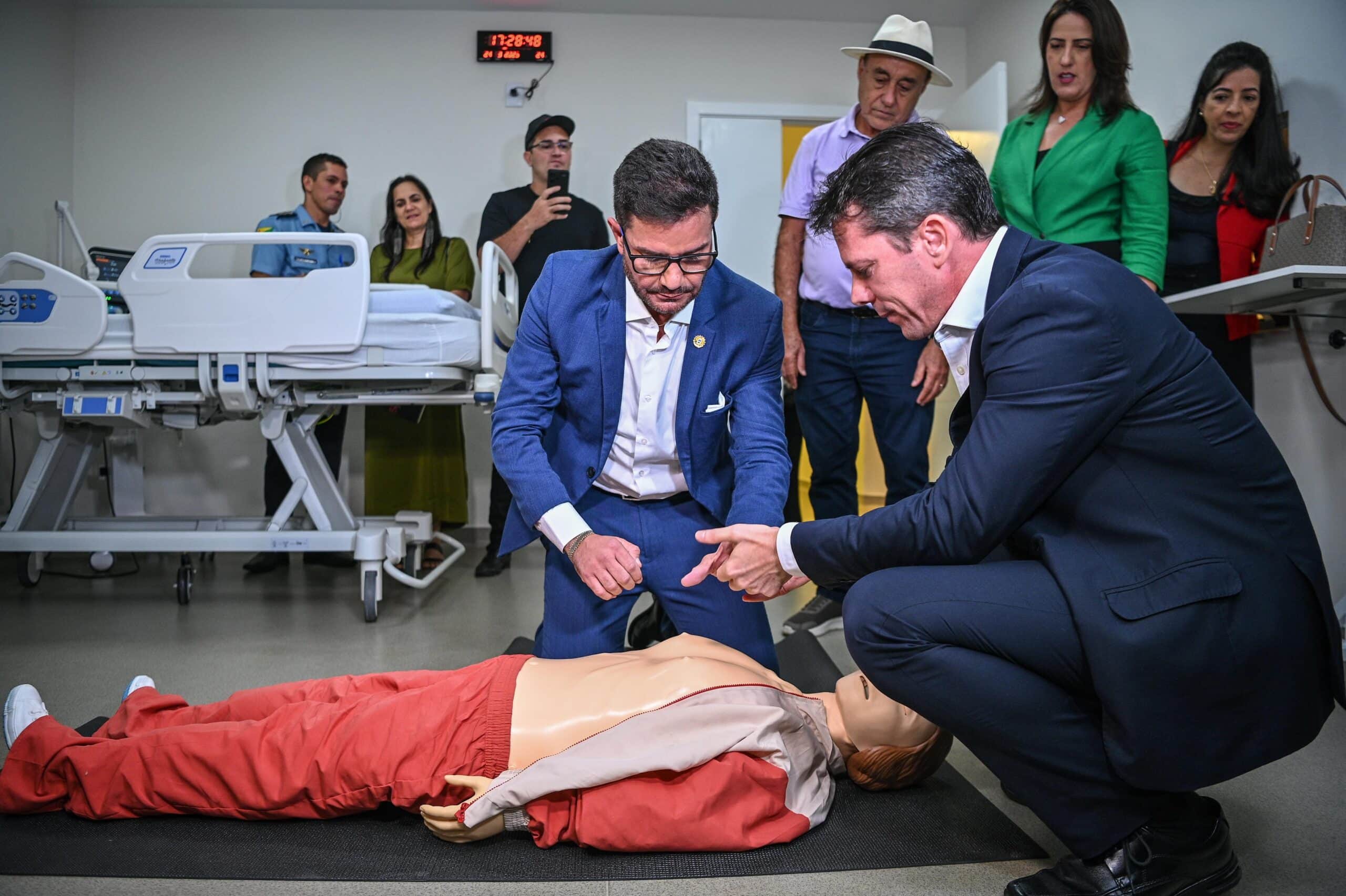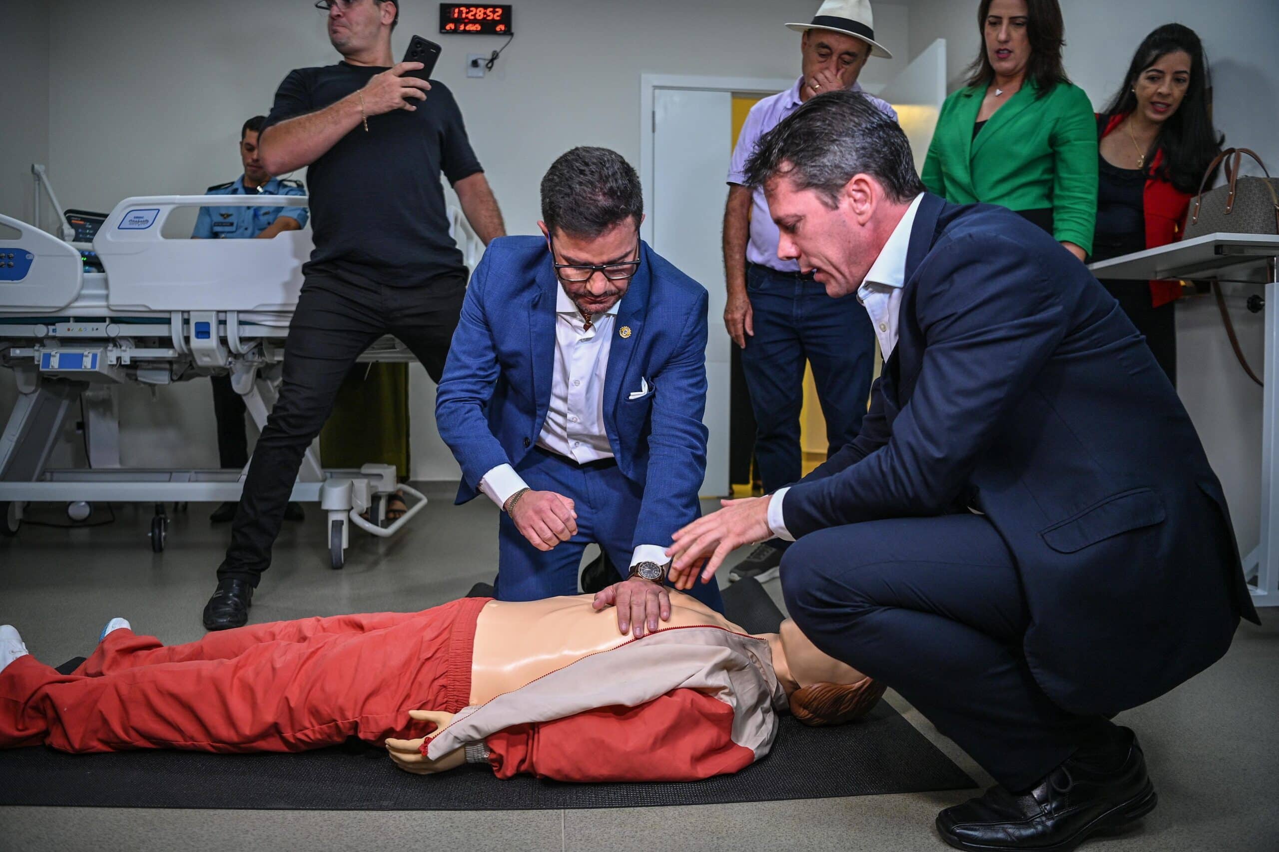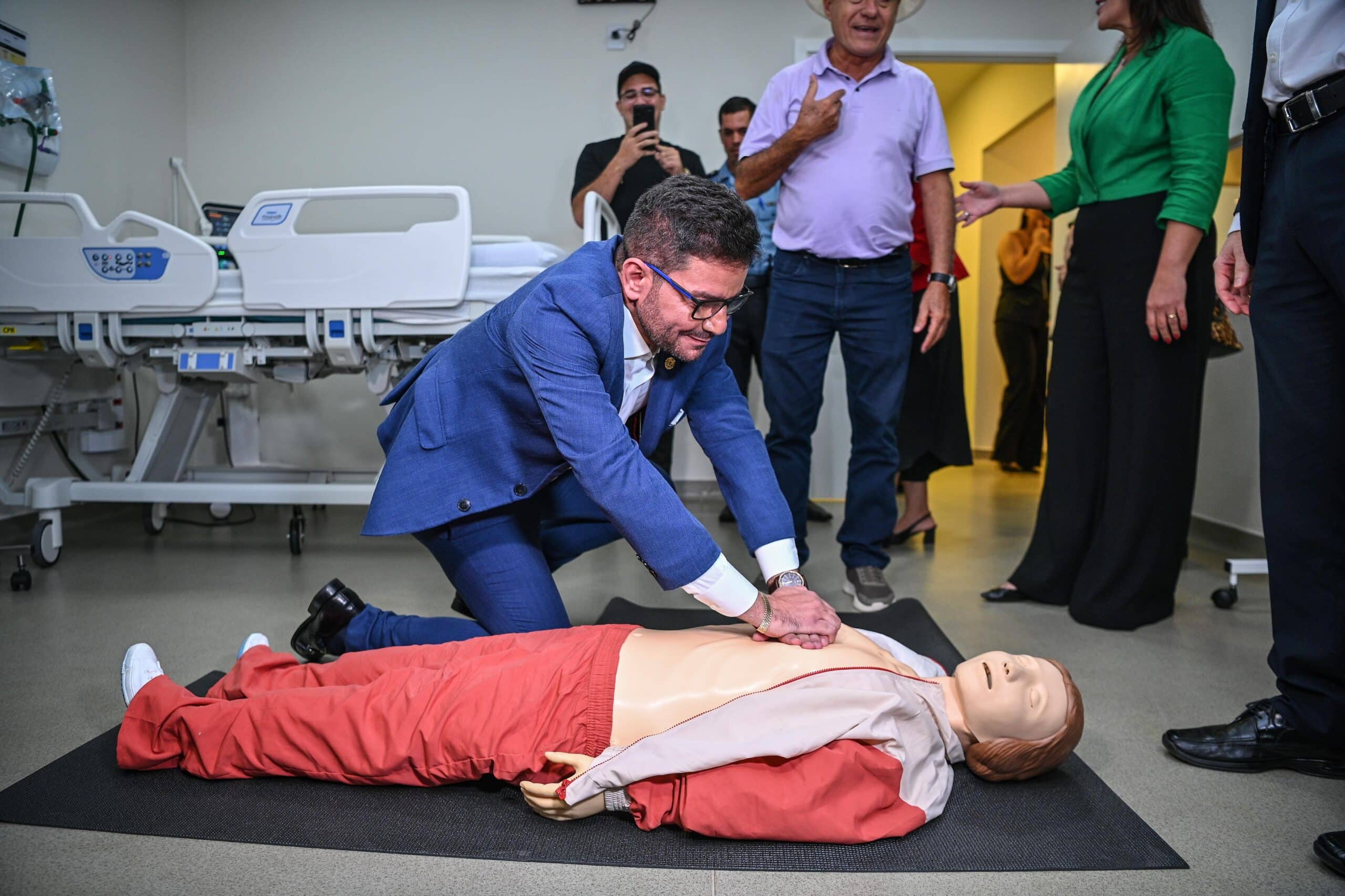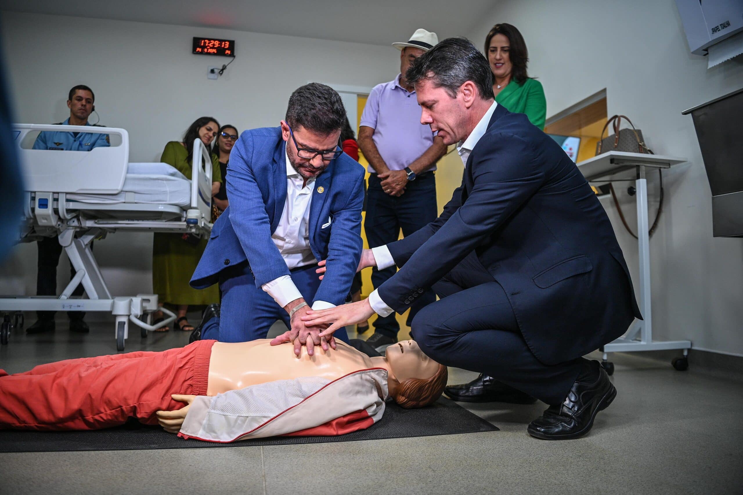 Durante o evento, o governador participou de uma demonstração de massagem cardíaca, destacando a importância da capacitação em primeiros socorros. Ele parabenizou os idealizadores da clínica, os irmãos Carlos e Odilson Silvestre, naturais de Brasileia, que investiram mais de R$ 20 milhões no empreendimento.