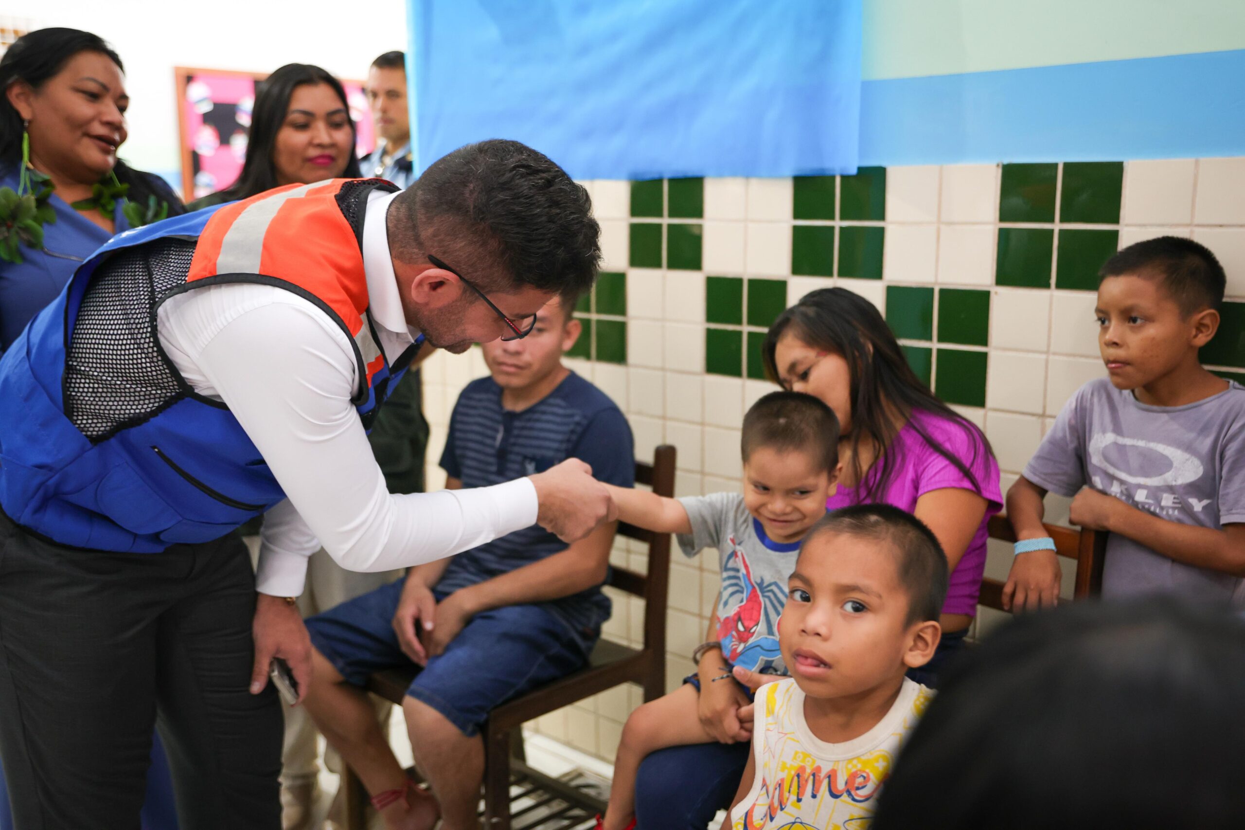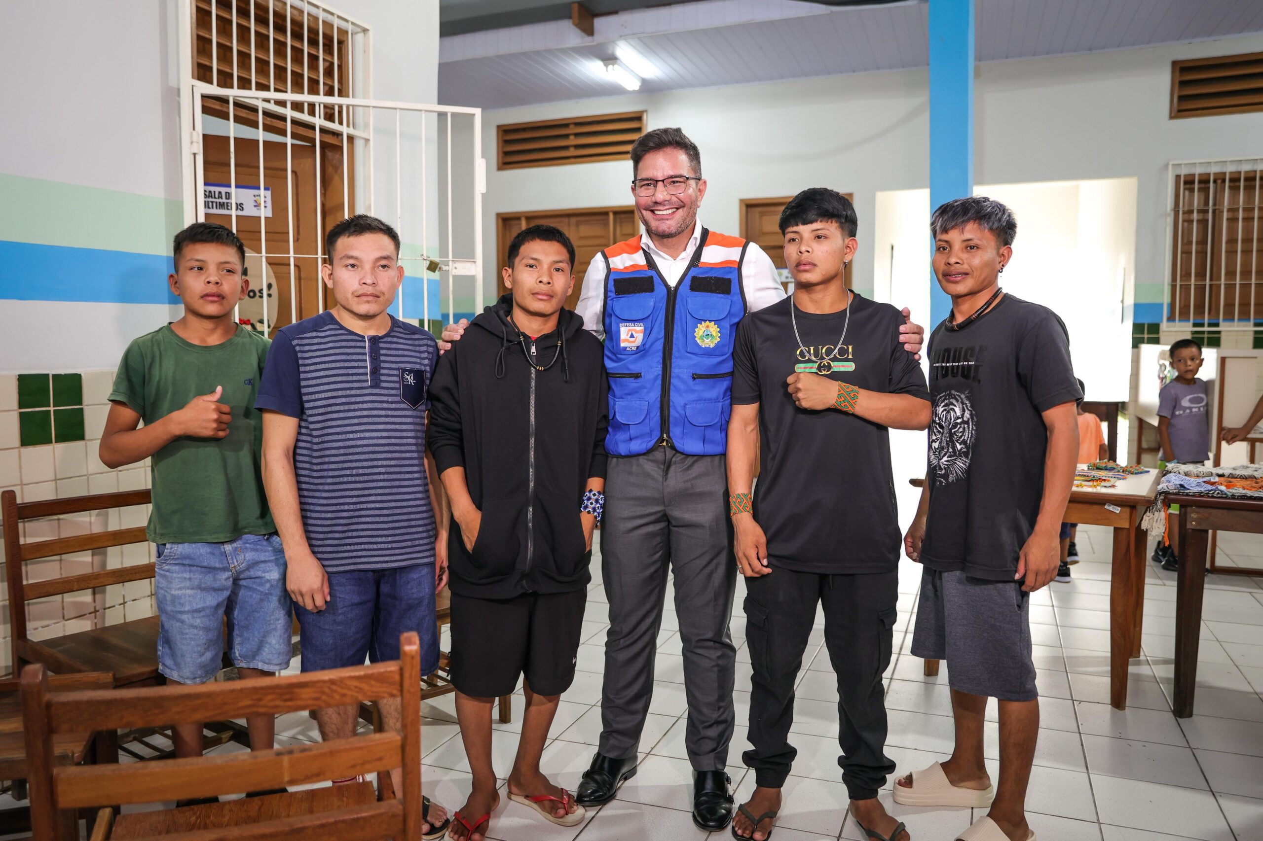 Na tarde desta segunda-feira, 10, o governador Gladson Camelí visitou a Escola Madre Hildebranda da Prá, localizada na Rua Diamantina, no bairro Cidade Nova, em Rio Branco, que está servindo de abrigo para famílias indígenas desabrigadas pela cheia do Rio Acre.