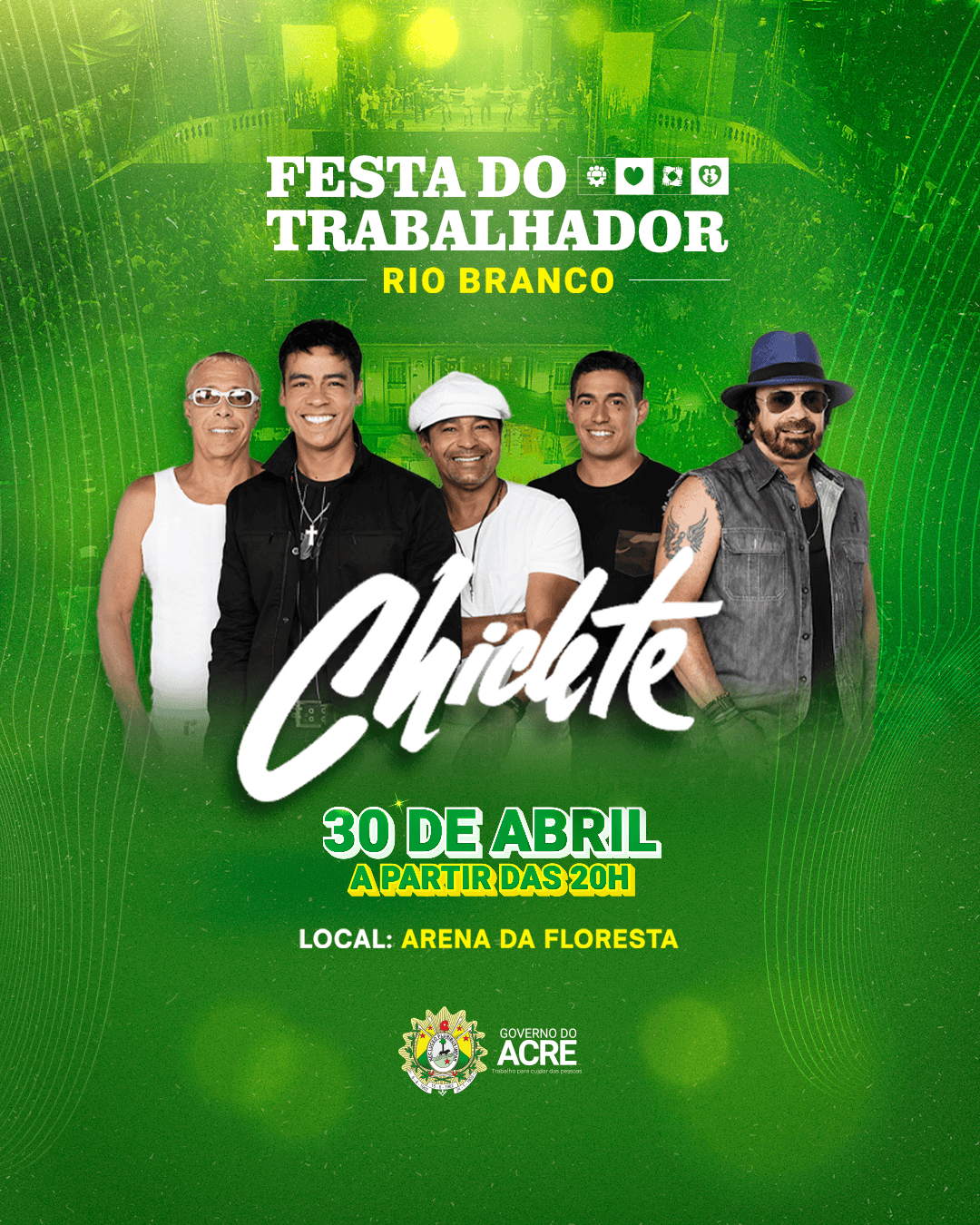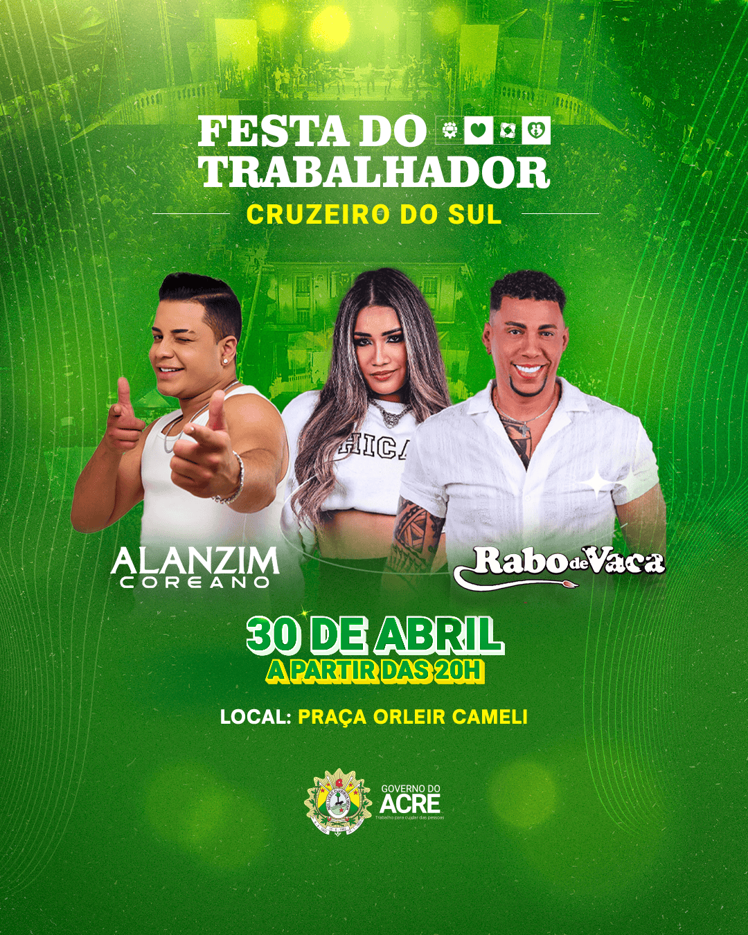 O governo do Acre, por meio da Casa Civil, acerta os últimos detalhes logísticos para a Festa do Trabalhador, que será realizada no próximo dia 30 de abril, em Rio Branco, com a atração nacional Chiclete com Banana, e em Cruzeiro do Sul, com Alanzim Coreano e a banda Rabo de Vaca. A entrada para os dois eventos será um quilo de alimento não perecível, que será destinado a famílias em situação de vulnerabilidade social, acrescentando solidariedade à comemoração.