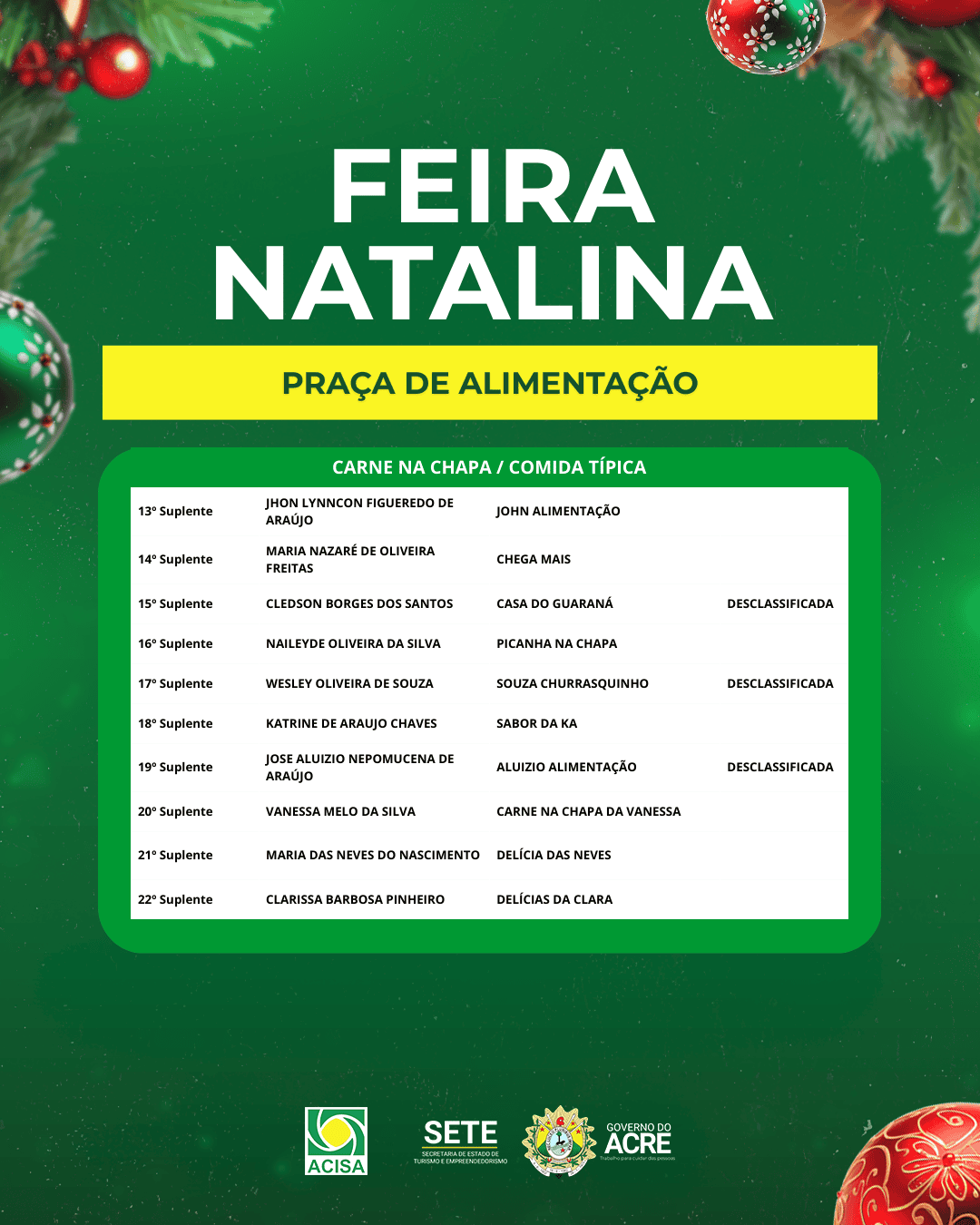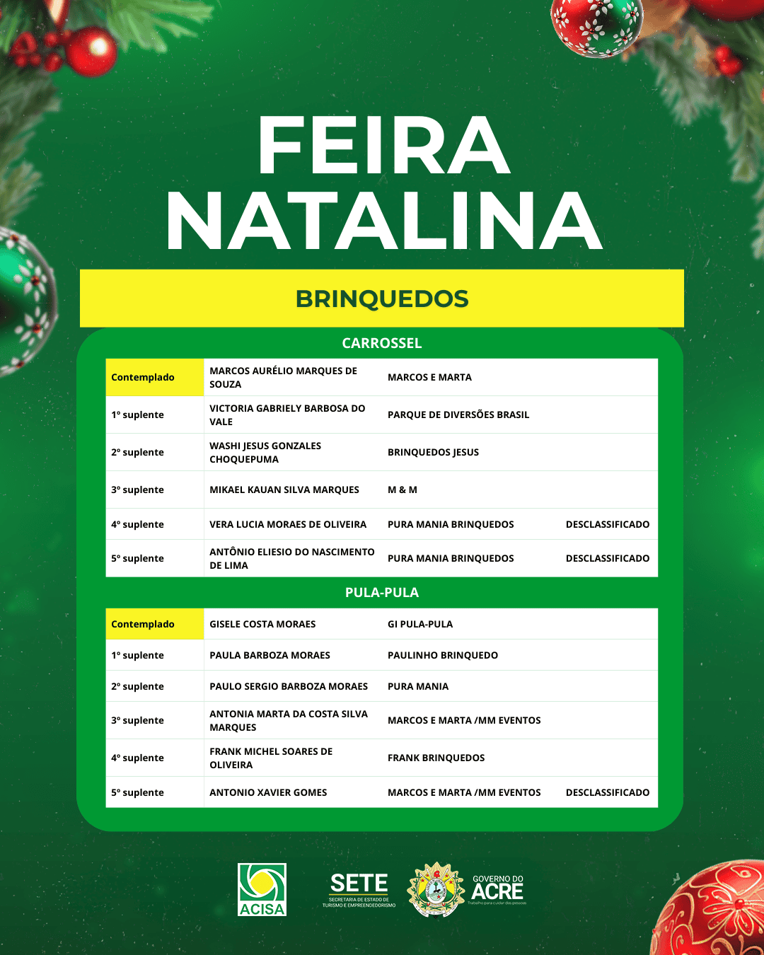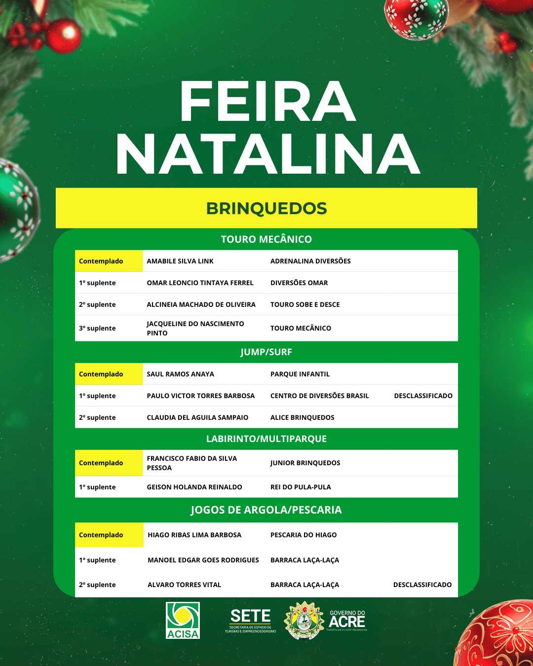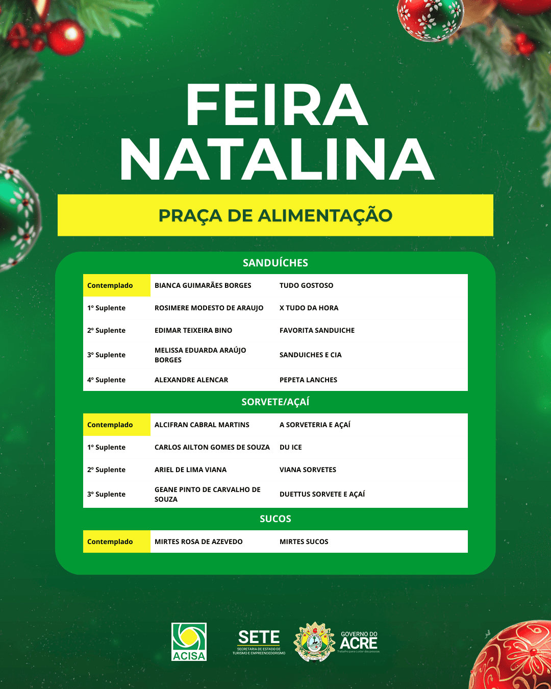 Governo divulga lista de empreendedores sorteados para participar da Feira Natalina | Cidade AC News – Notícias do AcreFoto: Divulgação Sete