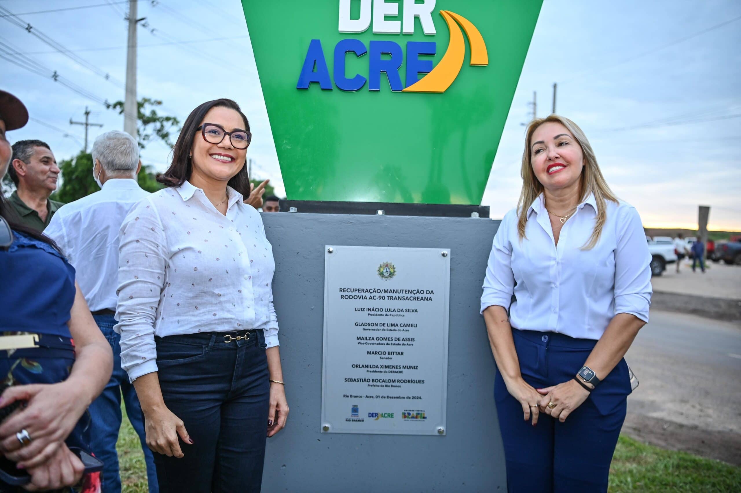 O governo do Acre, na figura da vice-governadora do Acre e titular da Secretaria de Estado de Assistência Social e Direitos Humanos (SEASDH), Mailza Assis, esteve presente, nesta quinta-feira, 26, no prédio do posto de inspeção e balança rodoviária da estrada transacreana, para a entrega da obra de revitalização do pavimento da rodovia AC-90, e também para a assinatura da ordem de serviço para a recuperação asfáltica de mais 59 km da rodovia, a partir do km 17, em Rio Branco.