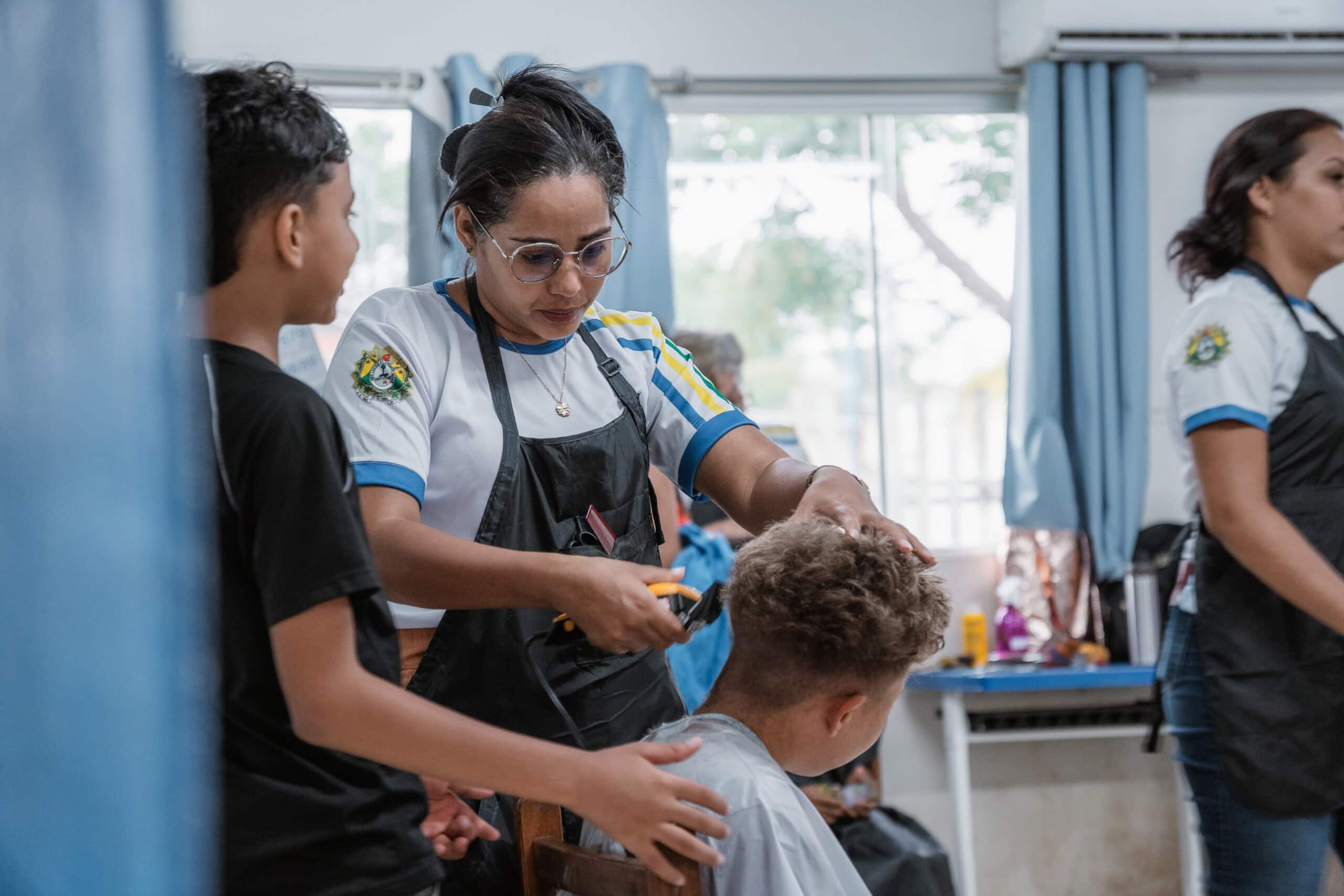 Para desenvolver o módulo prático do curso de Cabeleireiro, promovido pelo governo do Acre, por meio da Secretaria de Estado de Turismo e Empreendedorismo (Sete) e do Instituto Estadual de Educação Profissional e Tecnológica (Ieptec), os alunos realizaram, neste domingo, 19, uma ação com cortes gratuitos de cabelo infantil, masculino e feminino, no Polo Jesus é Vida, localizado no bairro Taquari, em Rio Branco.