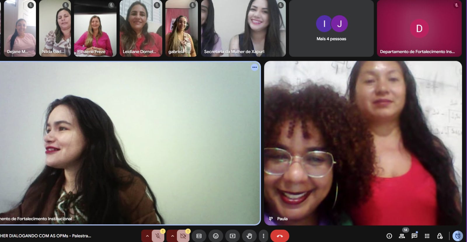 De forma online, Semulher promove reunião de formação às gestoras dos OPMs. Foto: cedidaDurante a formação, foram abordados conceitos fundamentais sobre discriminação, desigualdade estrutural e estratégias para enfrentamento das violências baseadas em gênero nos contextos locais.