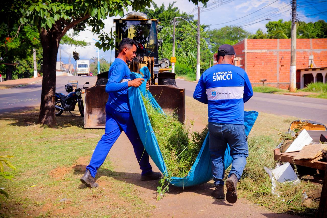 Limpeza, capina e roçagem das principais vias e bairros da capital acreana são ações permanentes executadas pela Prefeitura de Rio Branco, por meio da Secretaria Municipal de Cuidados com a Cidade.