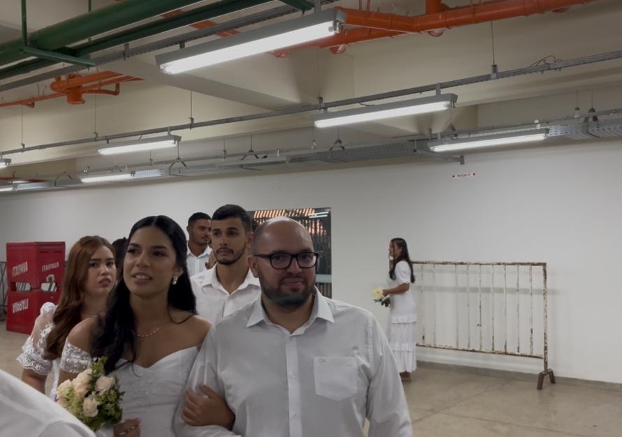 O momento emocionante marcou o encerramento da feira deste ano com uma cerimônia simbólica e cheia de significado para centenas de famílias. Vestidos de branco, com alianças e sorrisos, os casais celebraram a oficialização de suas uniões civis em um evento gratuito e acessível.