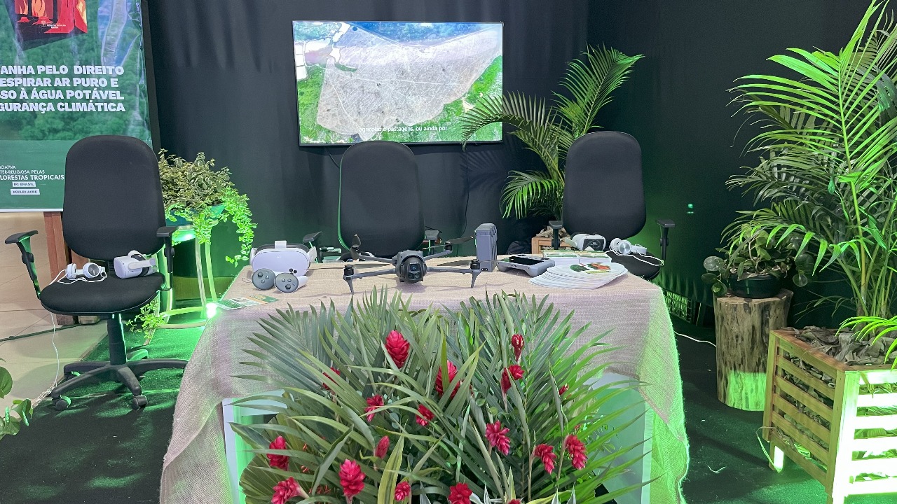 Na área da fiscalização ambiental, a equipe expõe o Portal de Denúncias Guardião Ambiental, uma plataforma online que permite à população registrar denúncias de crimes ambientais em Rio Branco. O público também pode assistir a videos com imagens aéreas realizadas pelos novos drones recebidos do Ministério do Meio Ambiente, como parte do Programa União com Municípios (UcM), fortalecendo o monitoramento de áreas de preservação e combate a queimadas.