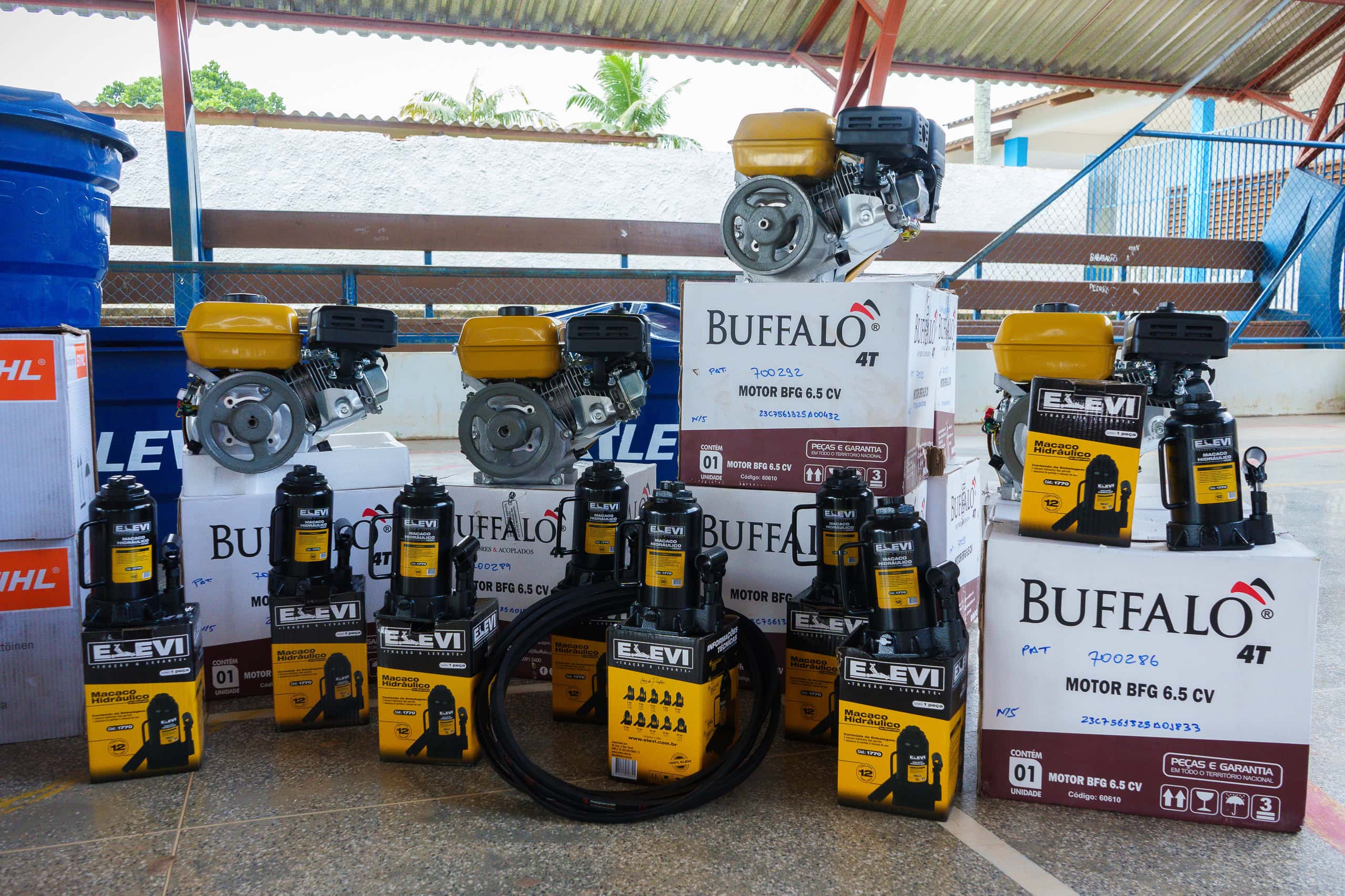 O governo do Acre, por meio da Secretaria de Estado do Meio Ambiente (Sema), realizou mais uma ação voltada para o fortalecimento da agricultura de subsistência nas unidades de conservação com a entrega de oito kits de casas de farinha, roçadeiras e equipamentos agrícolas aos moradores da Floresta Estadual do Antimary (FEA), entre os municípios de Bujari e Sena Madureira.