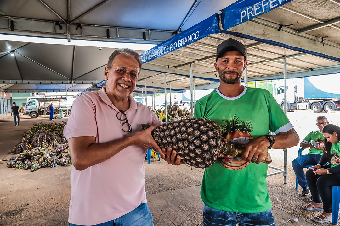 “Esse ano foi intenso. O abacaxi atrasou o amadurecimento por conta do sol forte, e normalmente o festival acontece em agosto ou setembro. Como só agora, em novembro, o fruto ficou bom, o prefeito e a vice-prefeita buscaram uma alternativa para os produtores venderem. Em parceria com a Prefeitura de Rio Branco, organizamos a mostra, sem custos, e esperamos que seja um sucesso. Temos produtos de mais de 30 produtores, representados aqui por cinco famílias. Além do abacaxi, trouxemos banana, goma e farinha”, explicou o secretário Leite.