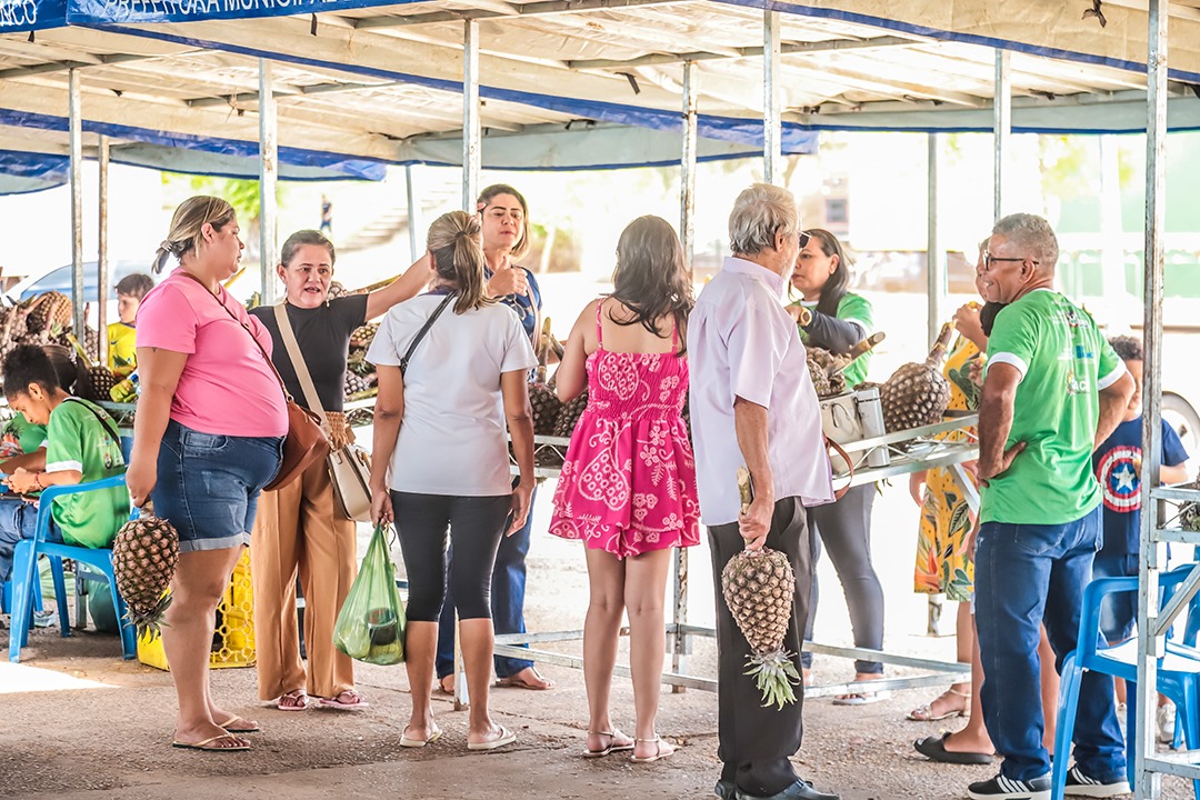 “Essa feira vem em boa hora, porque temos muita fruta e a prefeitura fez um acordo com os produtores para trazer aqui e tentar vender, para a gente não perder. Graças a Deus está dando certo, o que trouxemos estamos vendendo. É o nosso abacaxi gigante, o abacaxi de Tarauacá — a terra do abacaxi grande e da mulher bonita”, celebrou Rodrigues.