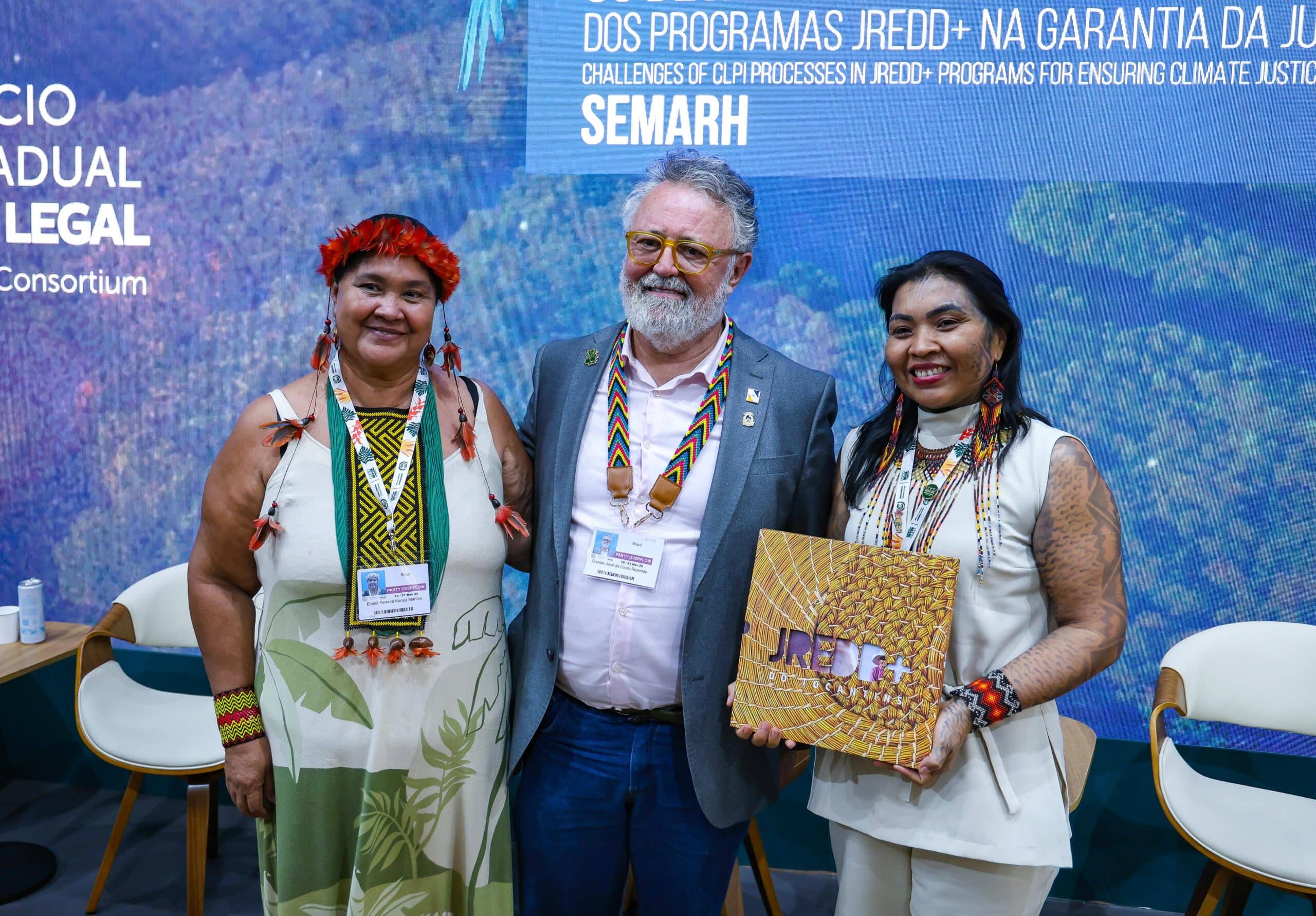 O Acre integrou o painel sobre os desafios dos processos de Consulta Livre Prévia e Informada (CLPI), dos Programas de REDD+ Jurisdicional na garantia da Justiça Climática, proposto pelo governo de Tocantins, no estande do Consórcio Amazônia Legal, na Zona Azul, da COP30, em Belém.
