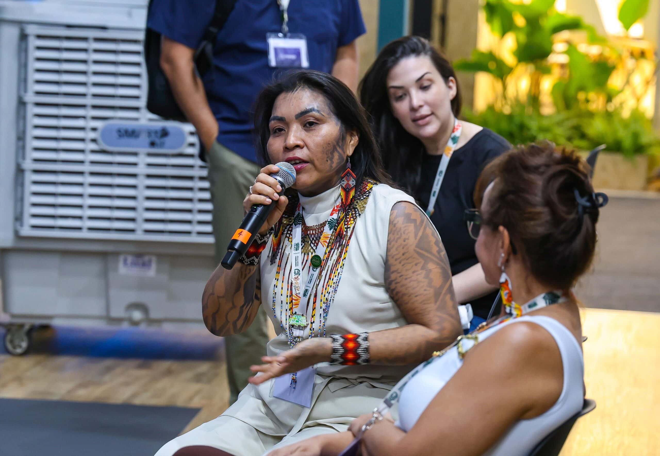 Representaram o governo do Acre, a presidente do Instituto de Mudanças Climáticas e Regulação de Serviços Ambientais (IMC), Jaksilande Araújo, e a secretária dos Povos Indígenas, Francisca Arara.