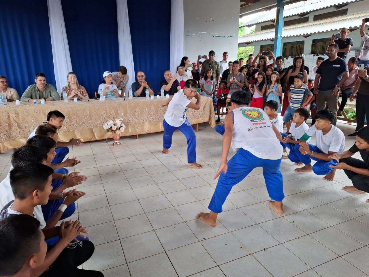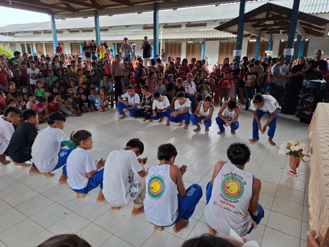 Ela foi recepcionada com a apresentação de indígenas do Centro de Convivência Municipal. Crianças misturaram arte, dança, filosofia e musicalidade, por meio de movimentos de capoeira, emocionando todos os presentes.
