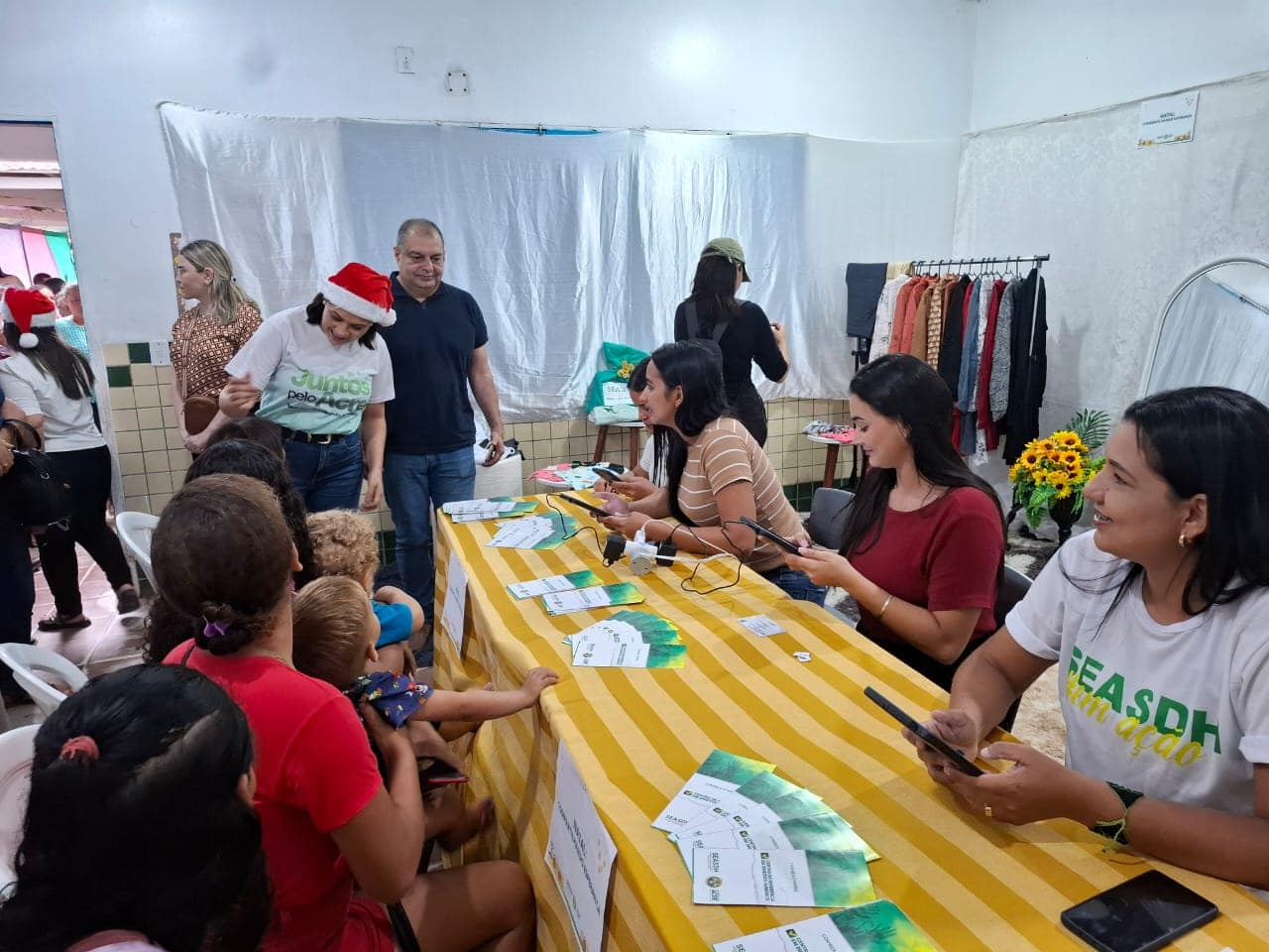 Crianças cadastradas em programas sociais tiveram acesso aos brinquedos doados pela campanha. Adolescentes receberam três peças de vestuários doados pela Receita Federal e os Correios. Em Jordão, a titular da SEASDH, acompanhada dos secretários de governo, também fez questão de visitar as salas com serviços de cidadania.