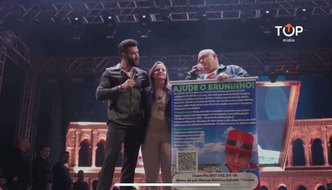 Durante sua apresentação nesta quarta-feira (2), na Expoacre Juruá, em Cruzeiro do Sul, o cantor Gusttavo Lima protagonizou um momento de forte comoção ao receber no palco os pais de Bruninho, um menino de 11 anos diagnosticado com autismo severo e uma mutação genética extremamente rara — único caso no mundo.