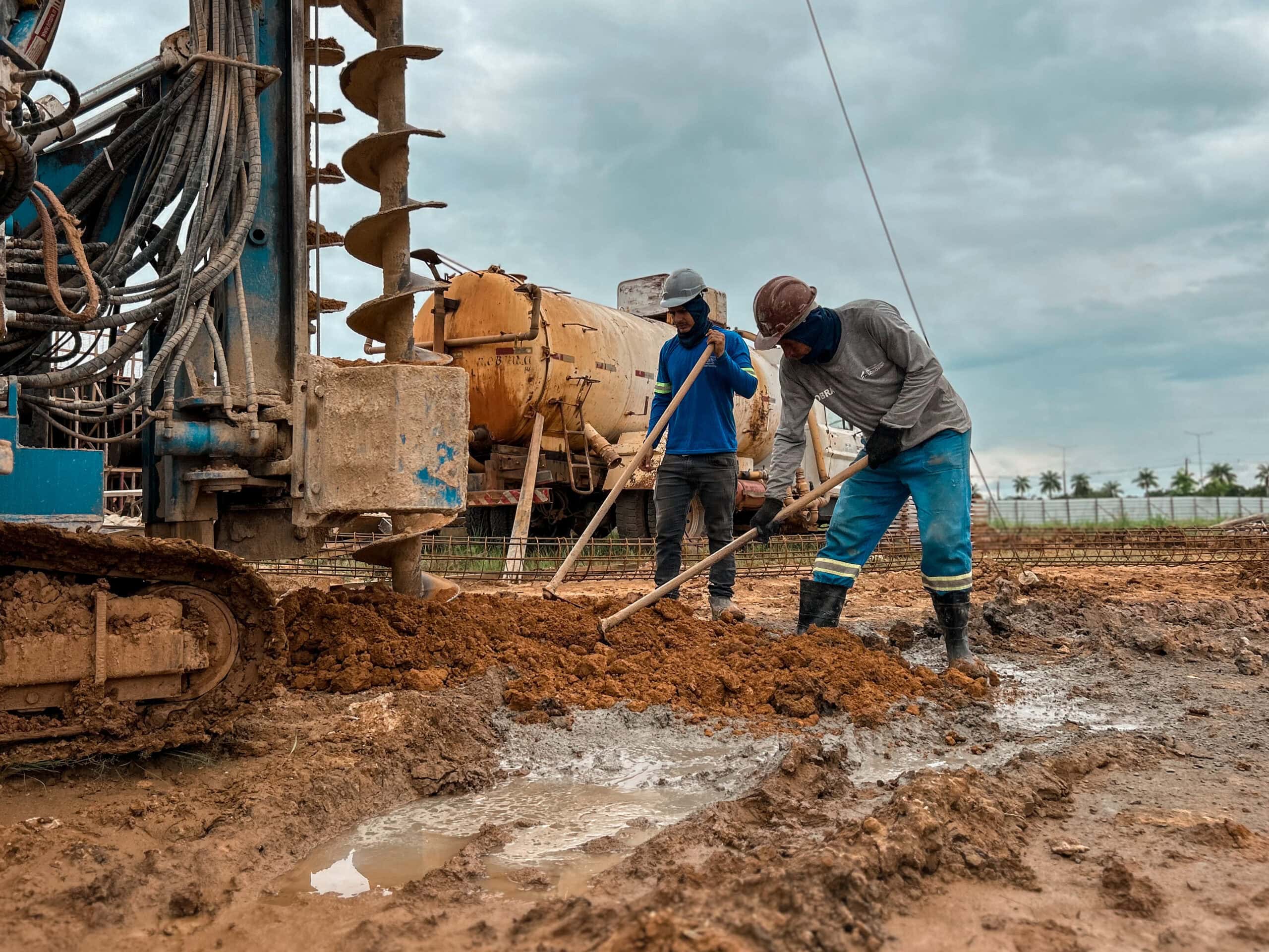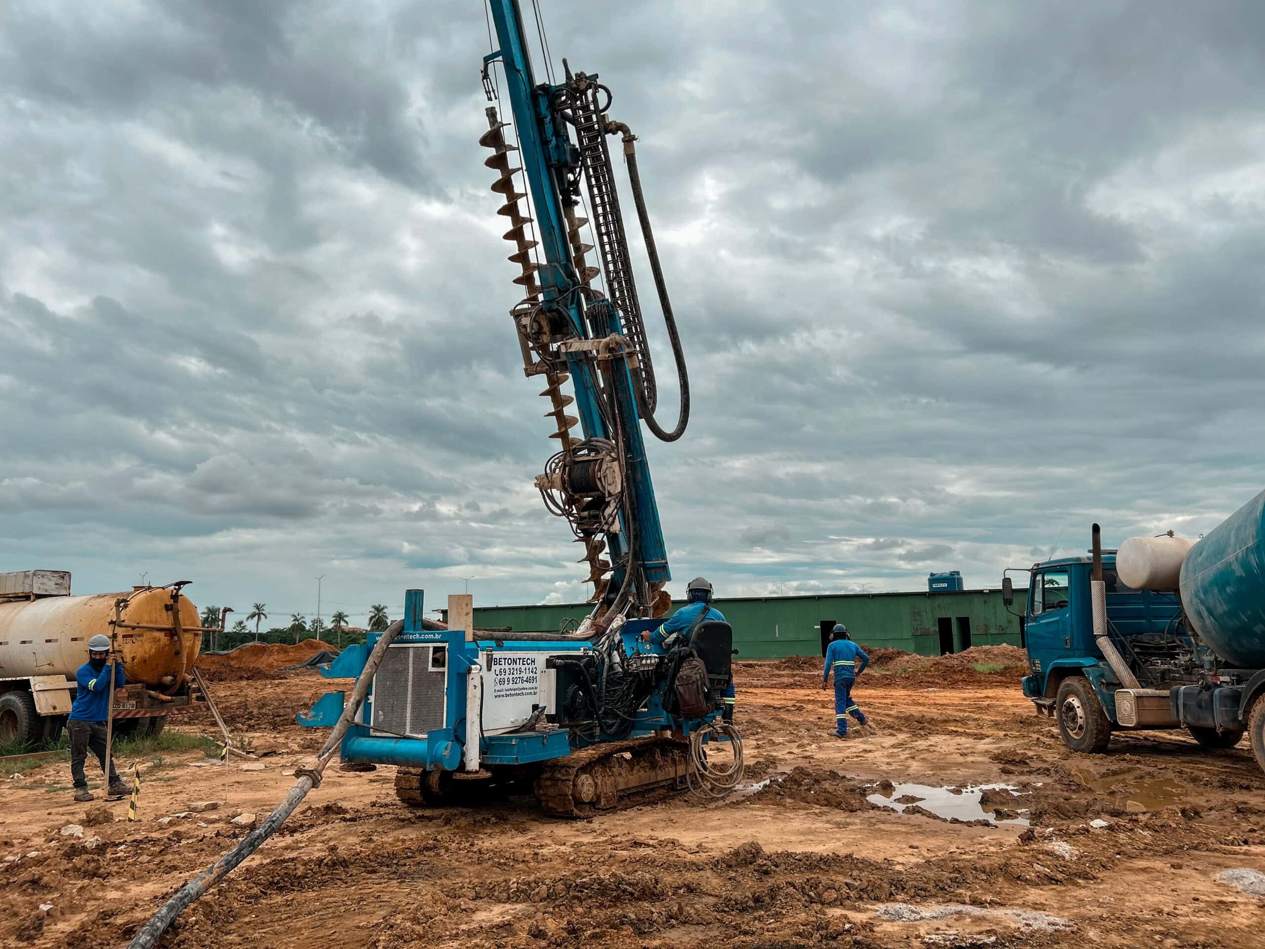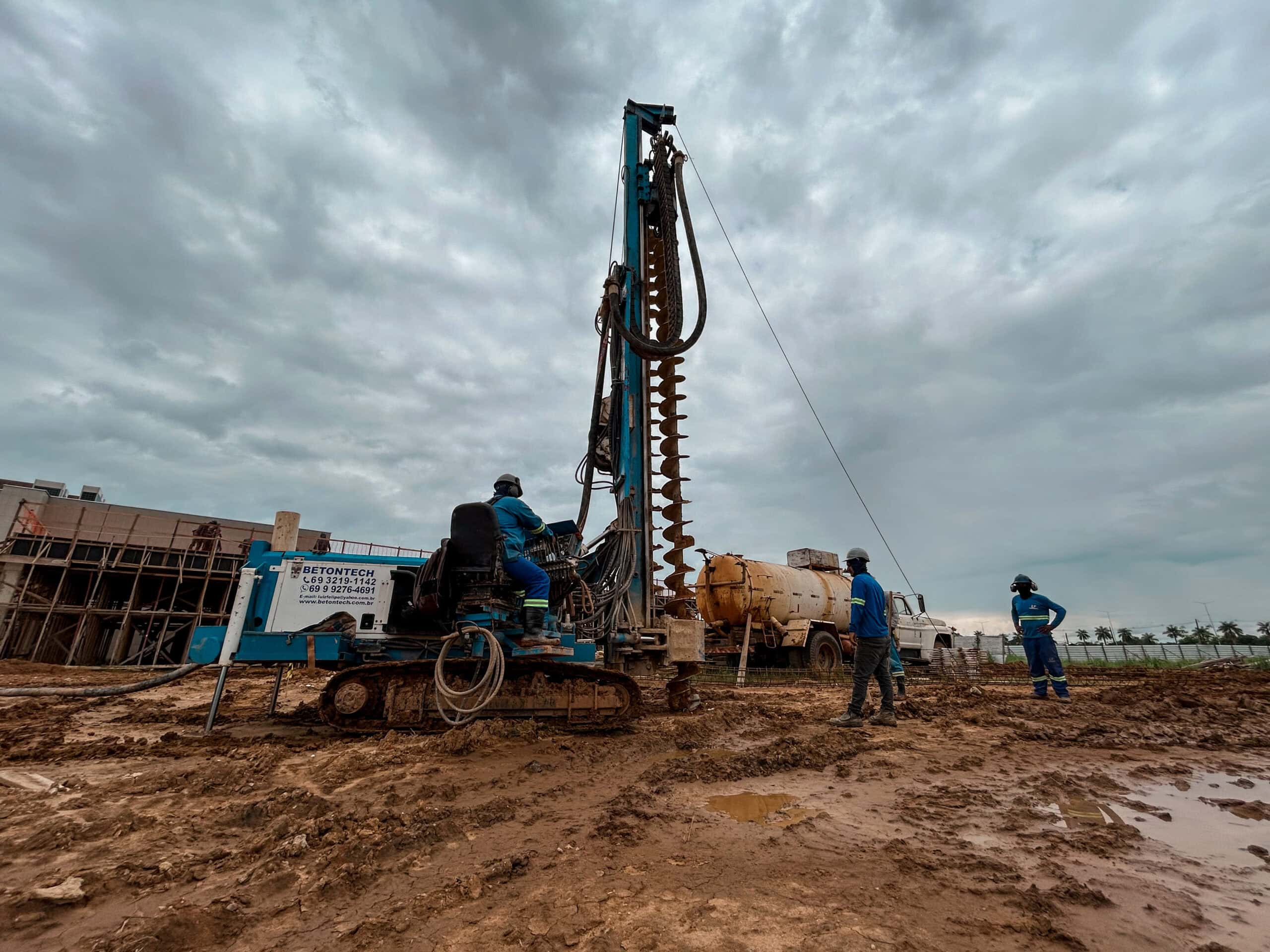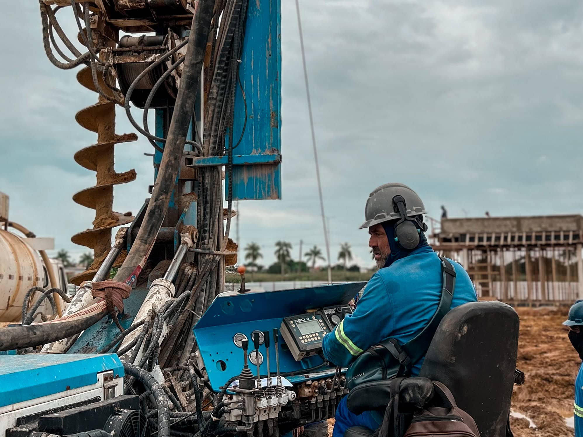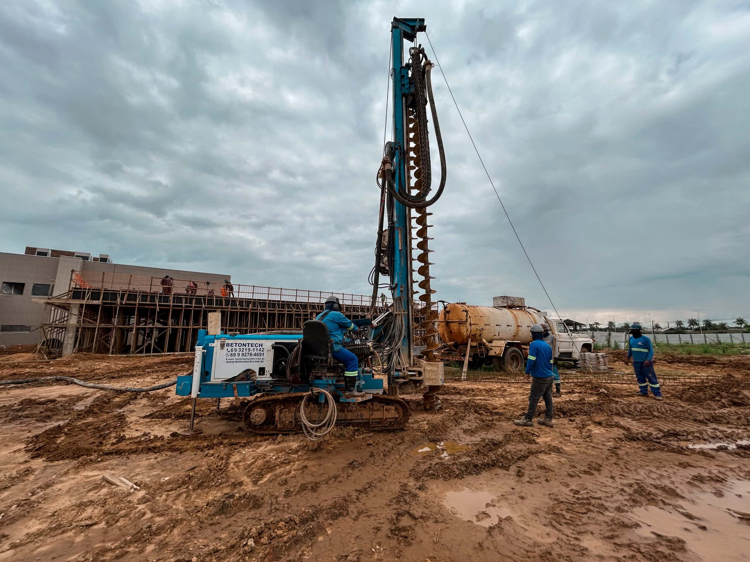 “Além da máquina que opera com diâmetro de 30cm e 40cm, chegou agora o equipamento que faz 50cm e 60 cm, para a fundação do prédio principal. Contudo, também trabalhamos simultaneamente no prédio da primeira fase e nos anexos”, relata.