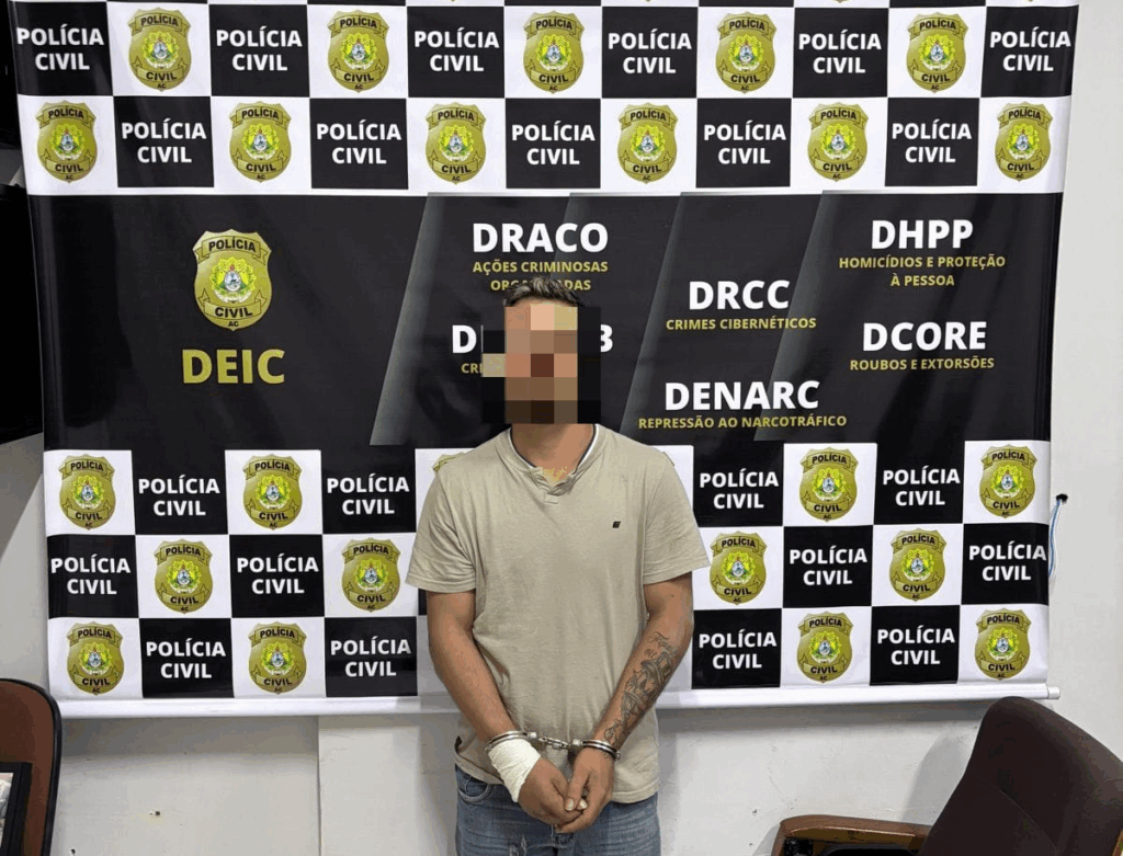 O investigado foi localizado após trabalho de inteligência que identificou que ele e sua esposa estavam hospedados em um hotel no bairro Bosque, em Rio Branco. A equipe realizou vigilância discreta no local e, ao confirmar a presença do alvo, efetuou sua prisão de forma imediata e sem resistência.