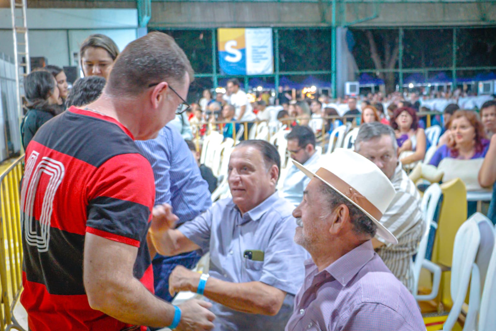 Trajando a camisa rubro-negra do clube de coração, o gestor municipal destacou a importância da presença do ex-jogador em solo acreano (Foto: Anderson Oliveira/Secom)