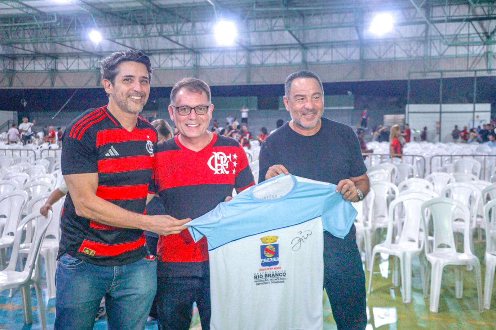 Trajando a camisa rubro-negra do clube de coração, o gestor municipal destacou a importância da presença do ex-jogador em solo acreano, sobretudo para a juventude, que pode conhecer um pouco mais da trajetória de sucesso do ídolo do Flamengo, além de aprender com os ensinamentos transmitidos durante a palestra.