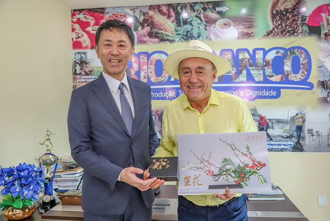 Segundo o diplomata japonês, o Japão mantém uma relação próxima com Rio Branco e já contribuiu com iniciativas importantes em parceria com outras cidades brasileiras, como Rio de Janeiro e Manaus. Até o momento foram realizados quatro projetos voltados ao fortalecimento das comunidades locais e à aquisição de equipamentos para a área da saúde, especialmente nos setores de saúde da mulher e da criança. O investimento total dessas ações, de acordo com ele, chega a cerca de R$ 2 milhões. Durante a visita, o cônsul destacou a importância da comunidade japonesa no Acre, que há décadas tem colaborado para o desenvolvimento da agricultura, da medicina e da educação no estado. Ele ressaltou que a viagem também teve como propósito conhecer melhor a atual situação do município e identificar novas oportunidades de cooperação.