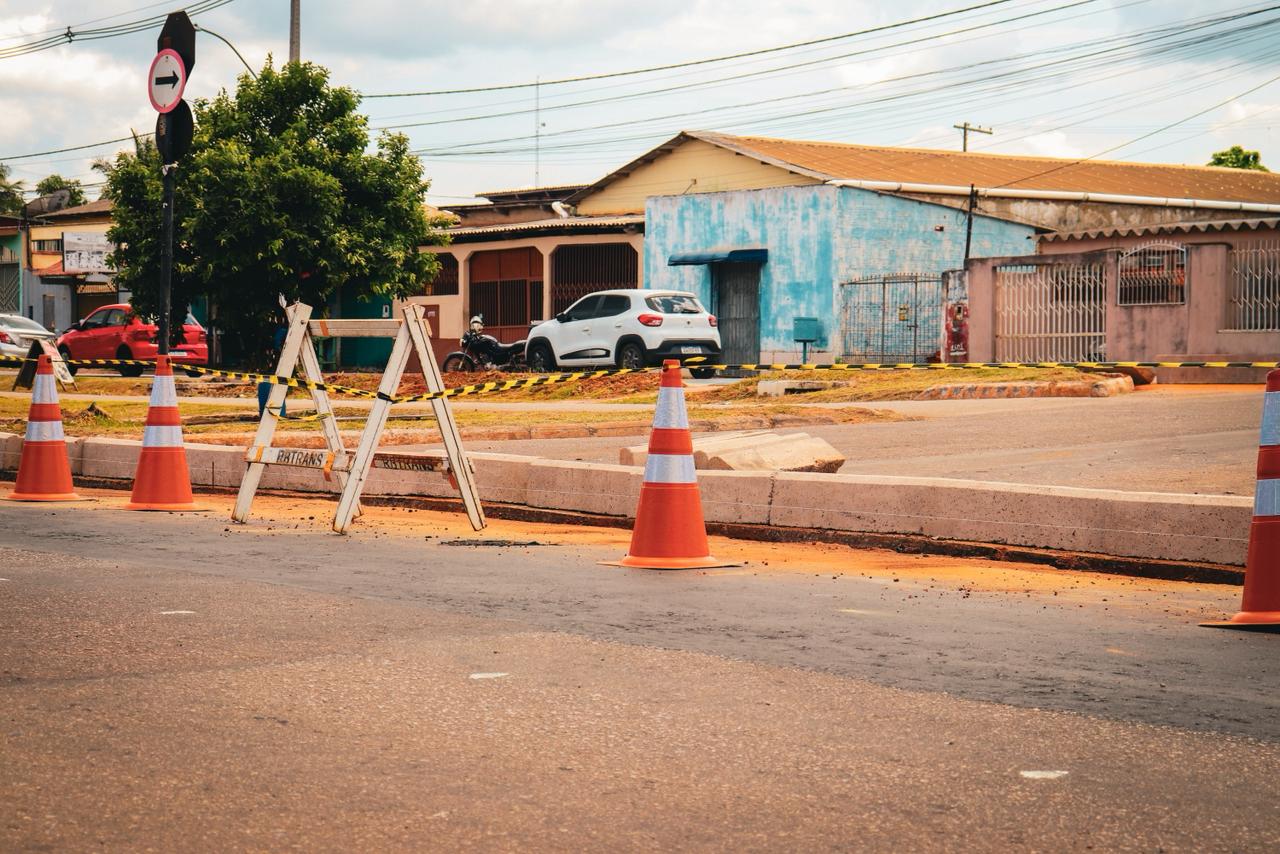 Foi realizado também o fechamento de uma área onde anteriormente era possível cruzar diretamente da rua Manaus para a Valdomiro Lopes. (Foto: Vitória Souza/Secom)
