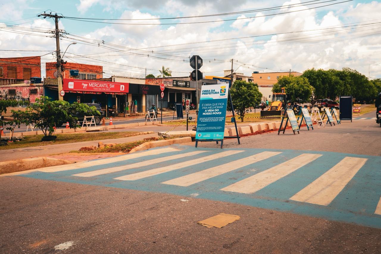 “Estamos realizando também a implantação de sinalização vertical e horizontal, que é a pintura do solo”, explicou Jairo. (Foto: Vitória Souza/Secom)