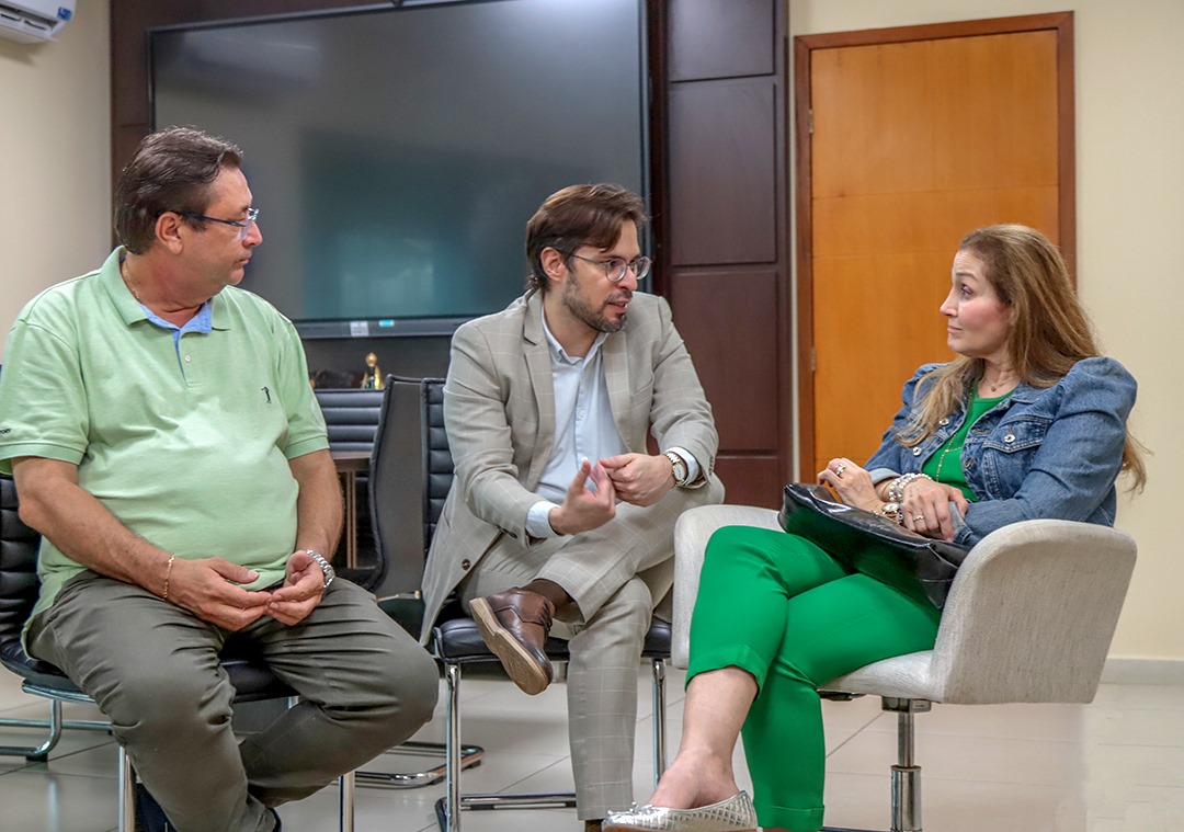 Em visita ao prefeito de Rio Branco, nessa quarta-feira (12), a diretora-presidente da Fundação Rede Amazônica (FRAM), Cláudia Daou Paixão, acompanhada de sua equipe, esteve reunida no gabinete do prefeito. O encontro contou também com a presença do secretário especial de Comunicação, Ailton Oliveira e do secretário especial para Assuntos Jurídicos e Atos Oficiais, Jorge Eduardo Bezerra. O objetivo da visita foi tratar de uma parceria estratégica para desenvolver projetos voltados à preservação ambiental e à melhoria da qualidade de vida da população, sobretudo a recuperação do Igarapé São Francisco e o fortalecimento do programa “1001 Dignidades”.