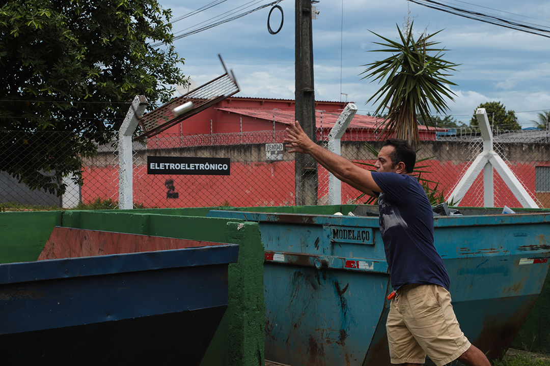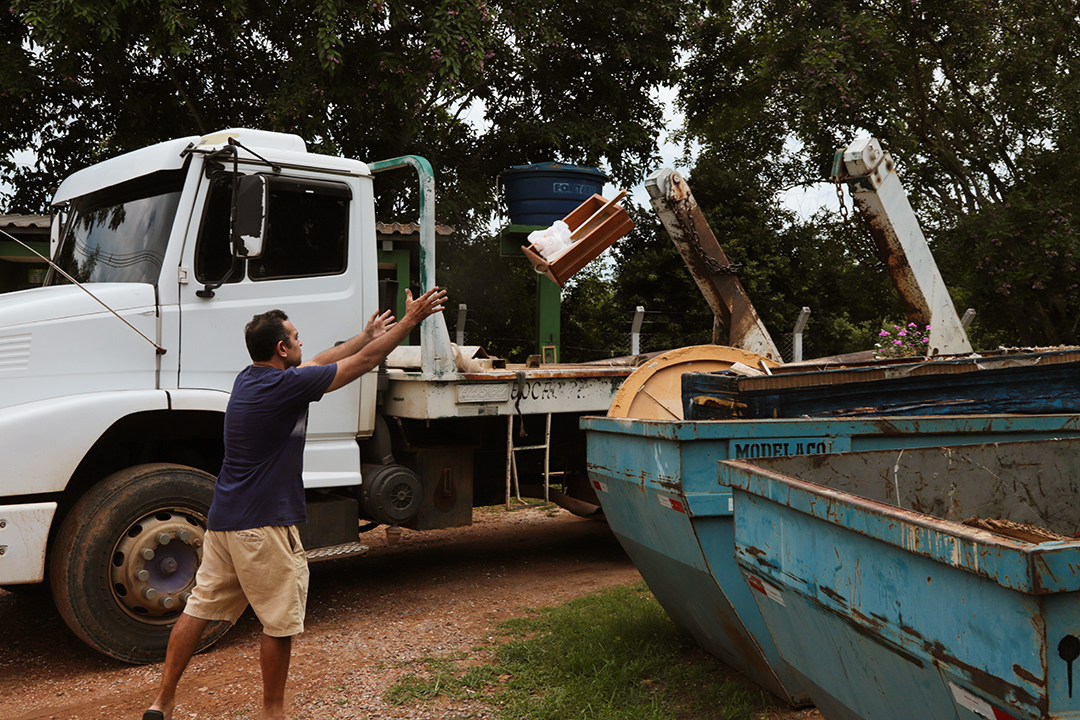 “O contribuinte traz seu material, misturado ou separado. Muitas pessoas já trazem separado, pois as instruímos corretamente. Eles trazem madeira, capim, ferro, plástico e outros. Antes de subirem na rampa ou aqui embaixo, explicamos onde deve ser colocado cada item: o ferro vai para cá, o eletrônico para ali e o entulho para lá. Às vezes, ainda ajudamos a separar o material, e na próxima vez eles já vêm com tudo organizado. E, para cada um, pergunto nome, bairro e o material que está trazendo”, destacou o encarregado.