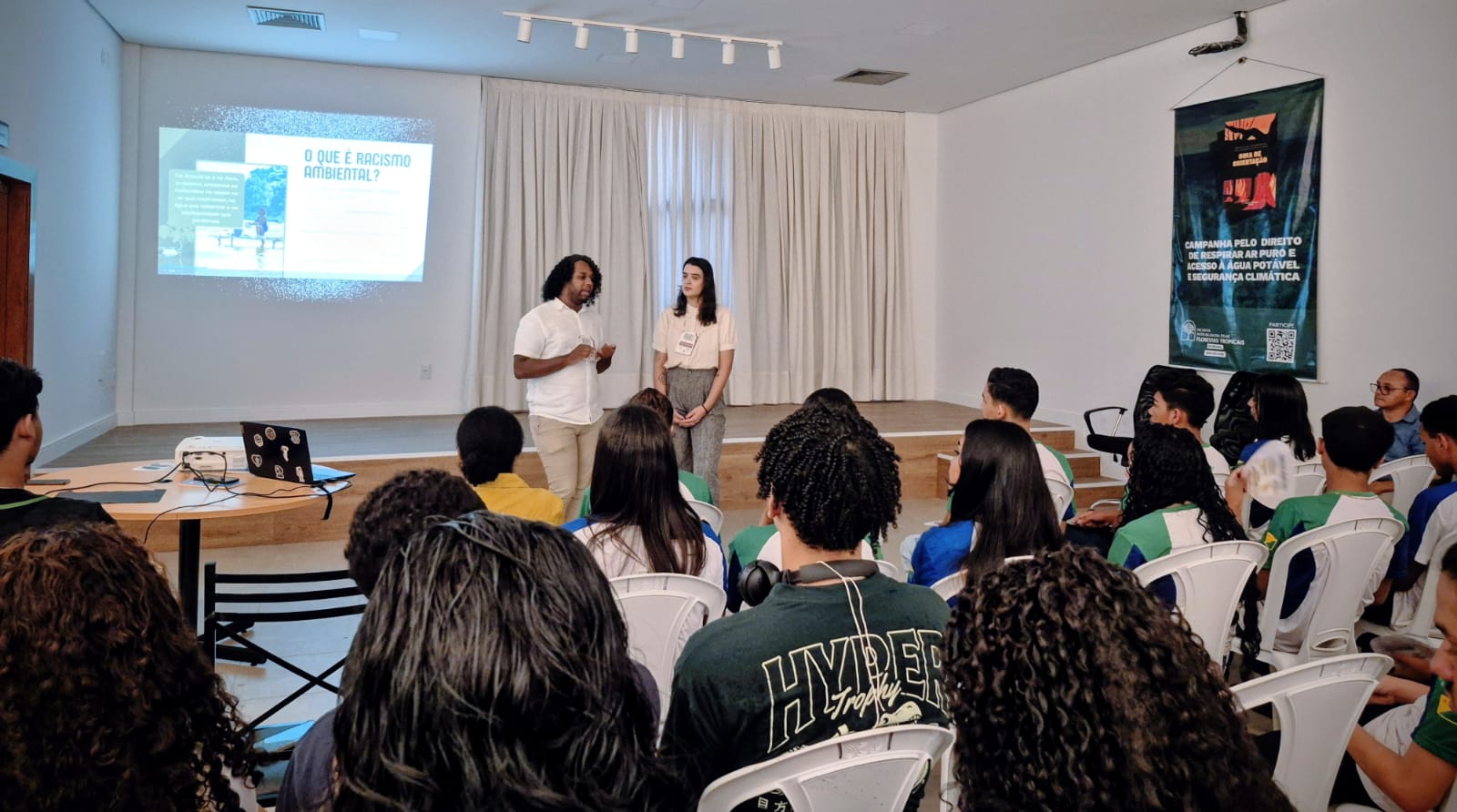 O encontro foi conduzido de forma conjunta pelo professor, historiador e educador ambiental Gabriel Henrique e pela bióloga e comunicadora ambiental Marinara Lusvardi, que destacaram como o racismo ambiental se manifesta no cotidiano amazônico, refletindo-se em desigualdades no acesso a direitos, na exposição a riscos ambientais e na vulnerabilidade de povos e comunidades tradicionais.